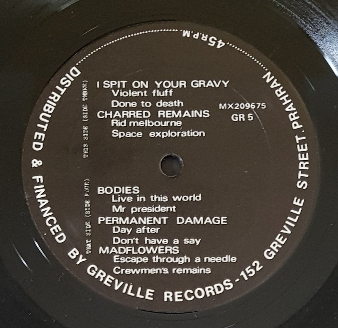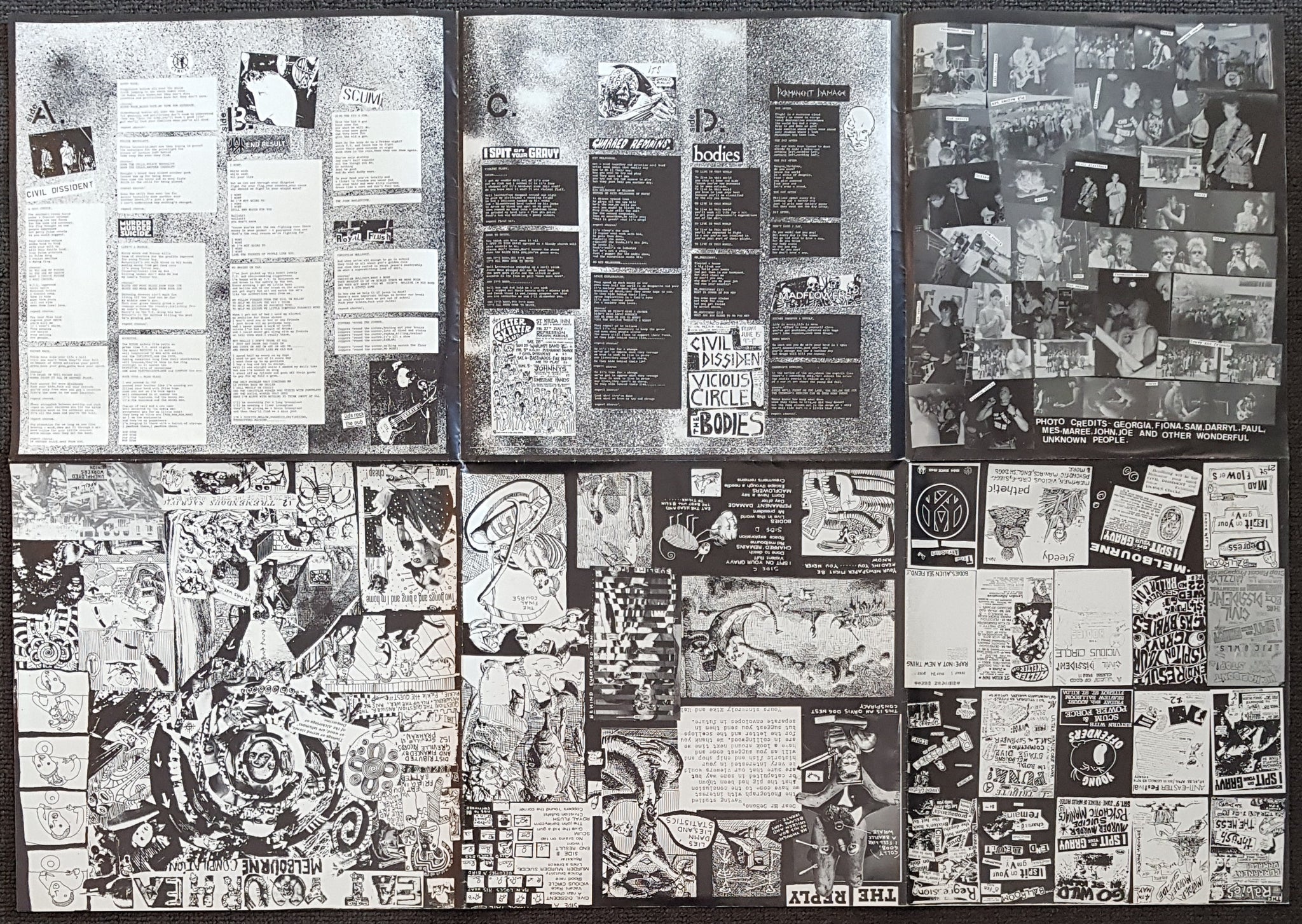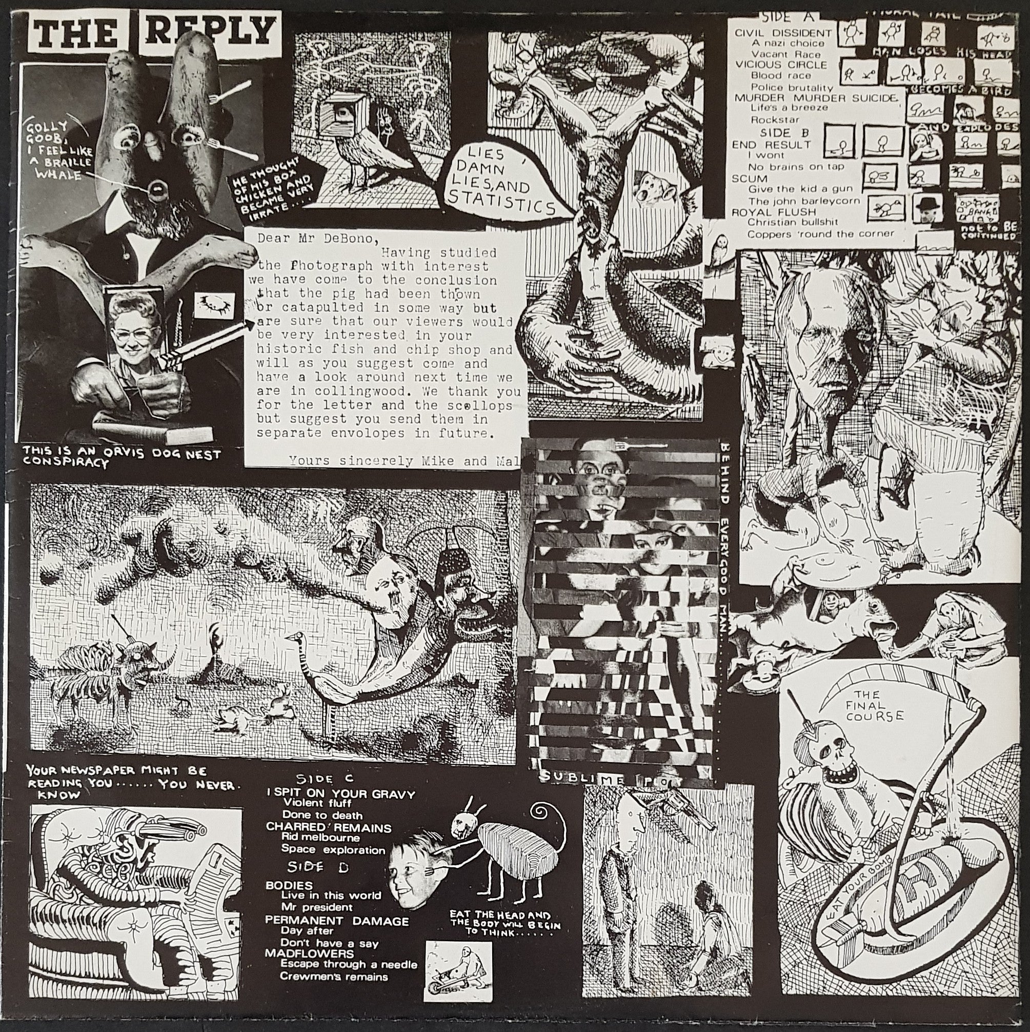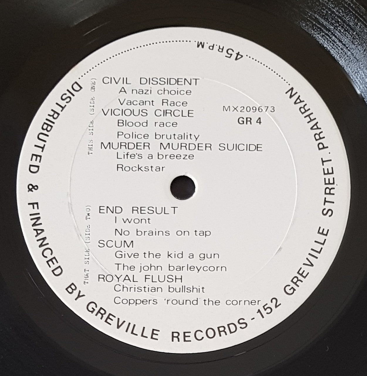 Compilation w.Poster Sleeve. 1984 Greville Records / No Masters Voice GR4/5. Features Civil Dissident, Vicious Circle, Murder Murder Suicide, I Spit On Your Gravy, Charred Remains, Permanent Damage & Others. Poster cover is in great shape