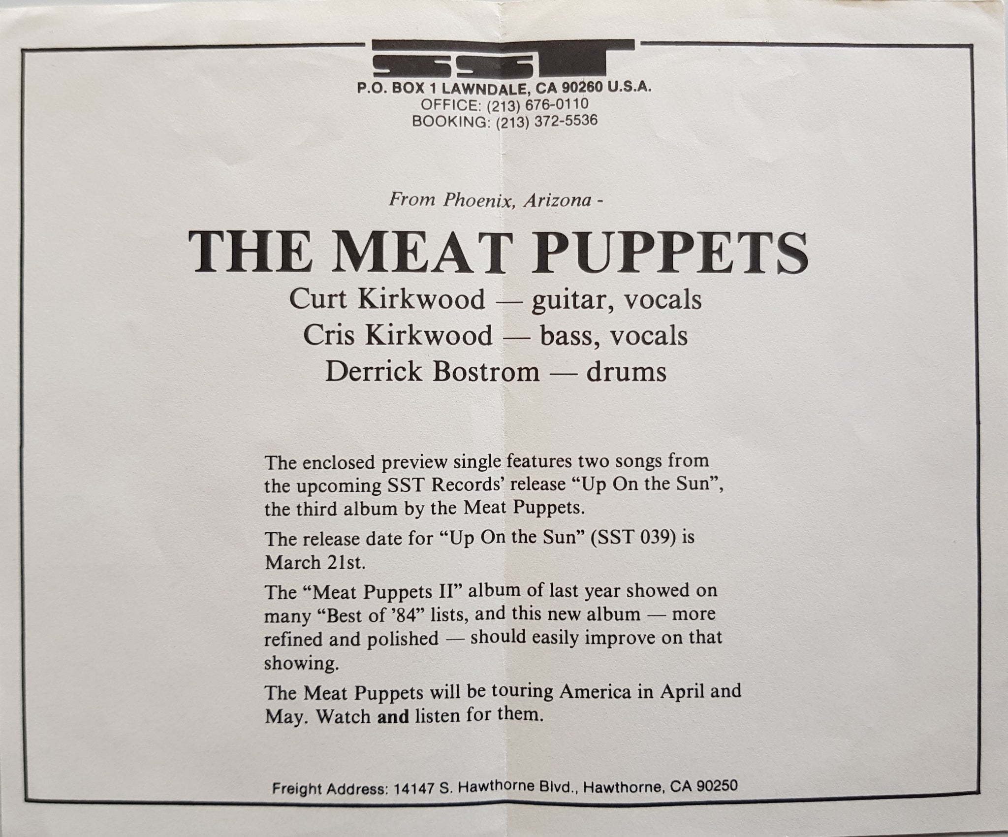 PS. Orange SST Labels PSST E39. Comes with Promo Bio Sheet Claiming This 45 to be a Preview Copy. Cover has Drawing by Derrick and Is Signed by Cris & Curt. Small tear on Rear of Sleeve and Along Seam.