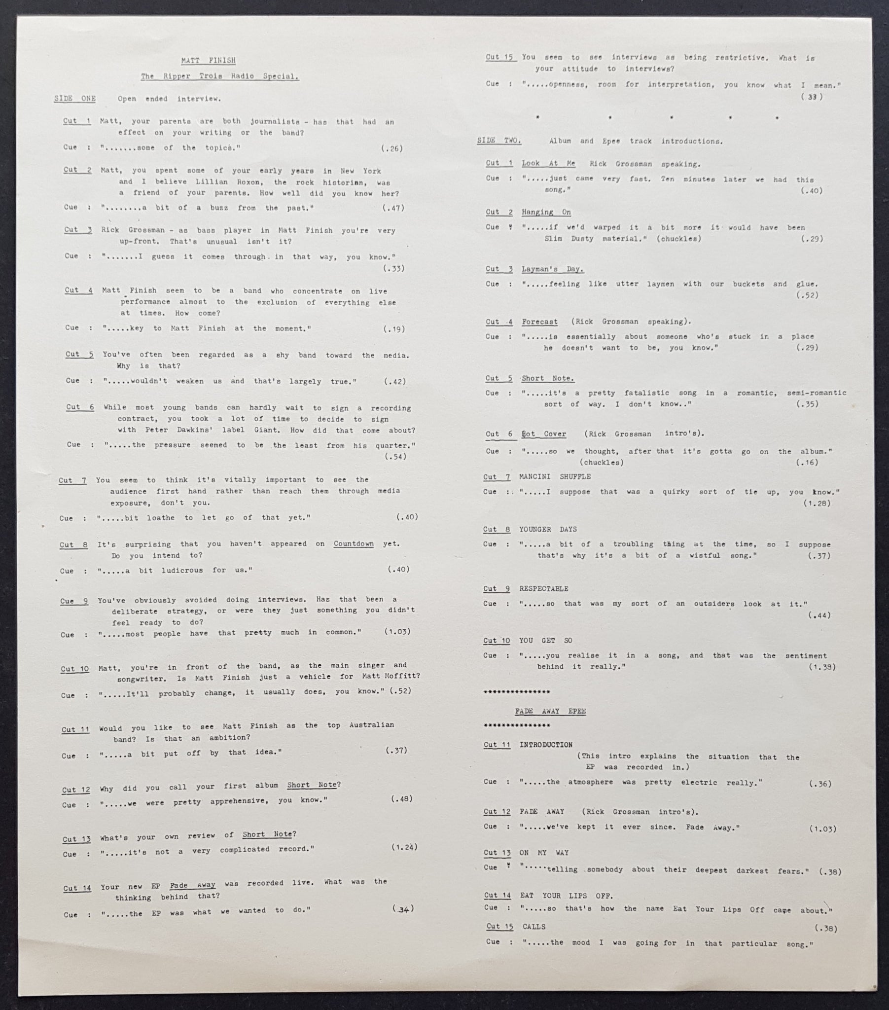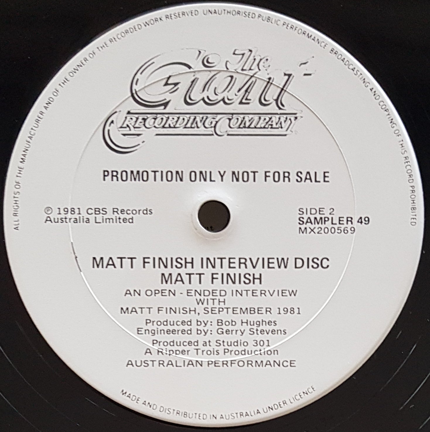 White Label Promo Only Interview Known As 'The Ripper Trois Radio Special' with Cue Sheet. 1981 CBS / GIANT Recording Co. SAMPLER 49