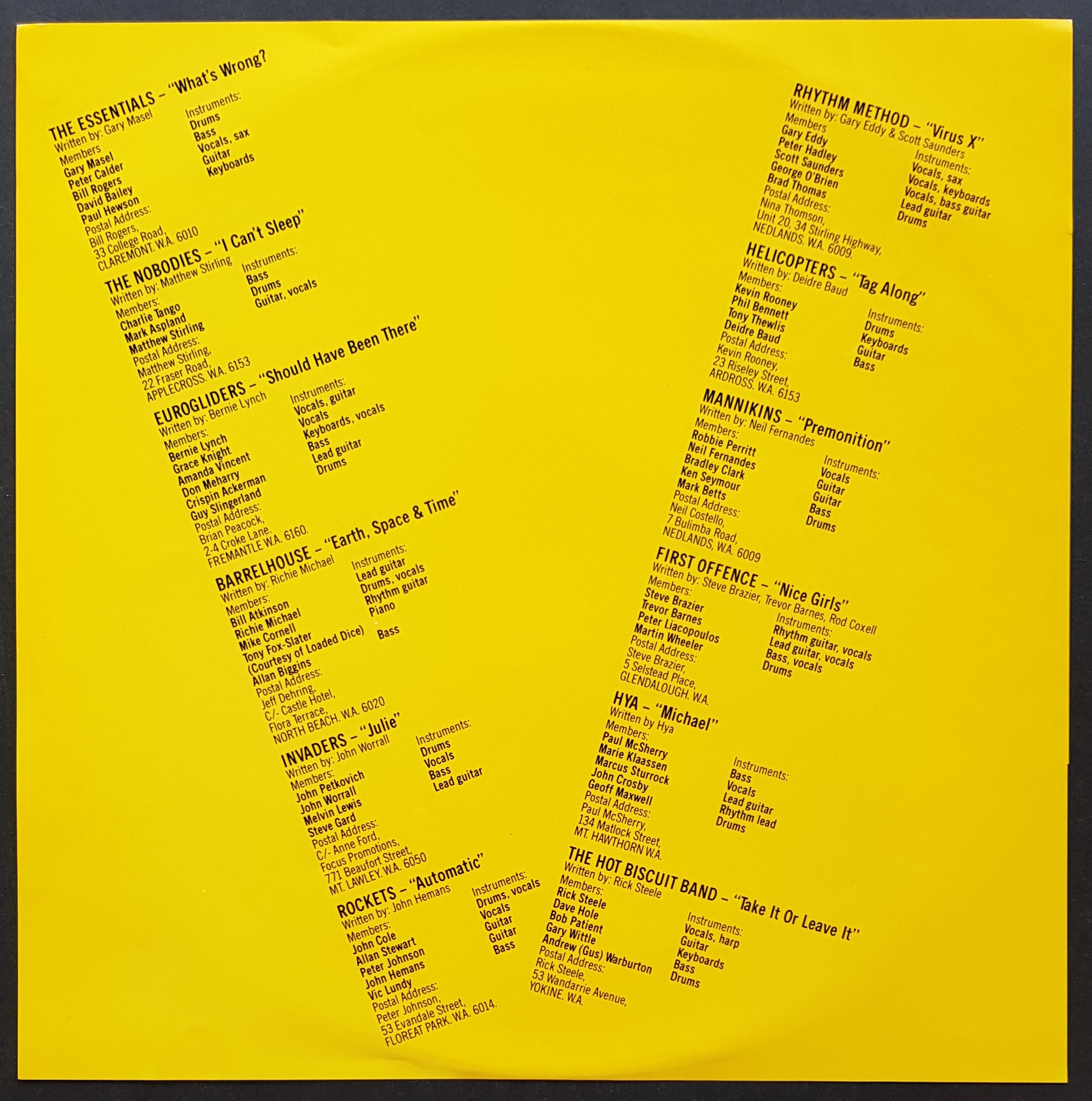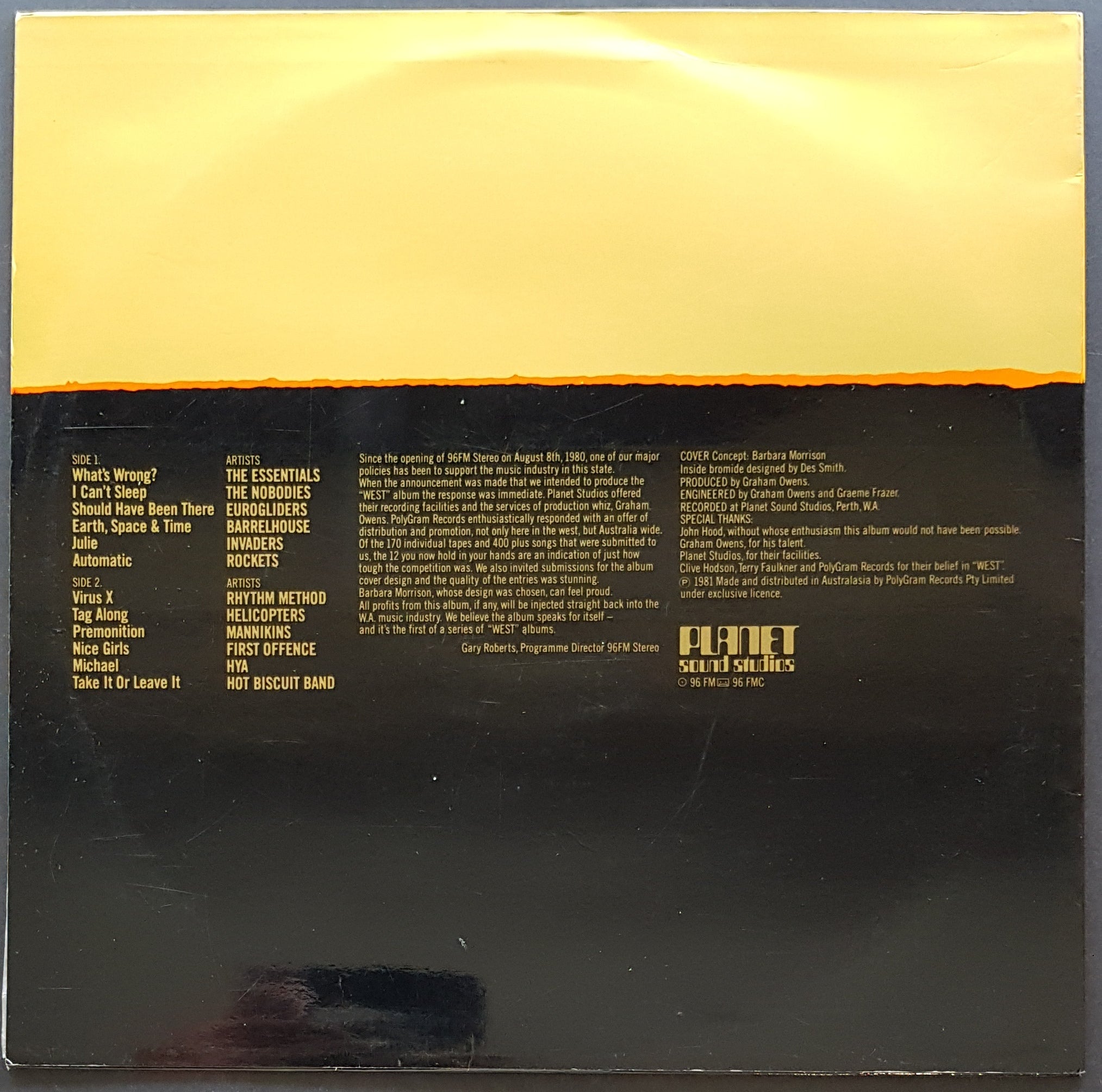 w.Insert. 1981 Compilation Of Western Australian Bands Issue by 96fm. Features the Mannikins, Rockets & Hot Biscuit Band w.Dave Hole. Minor Wear / Scuffing on Cover