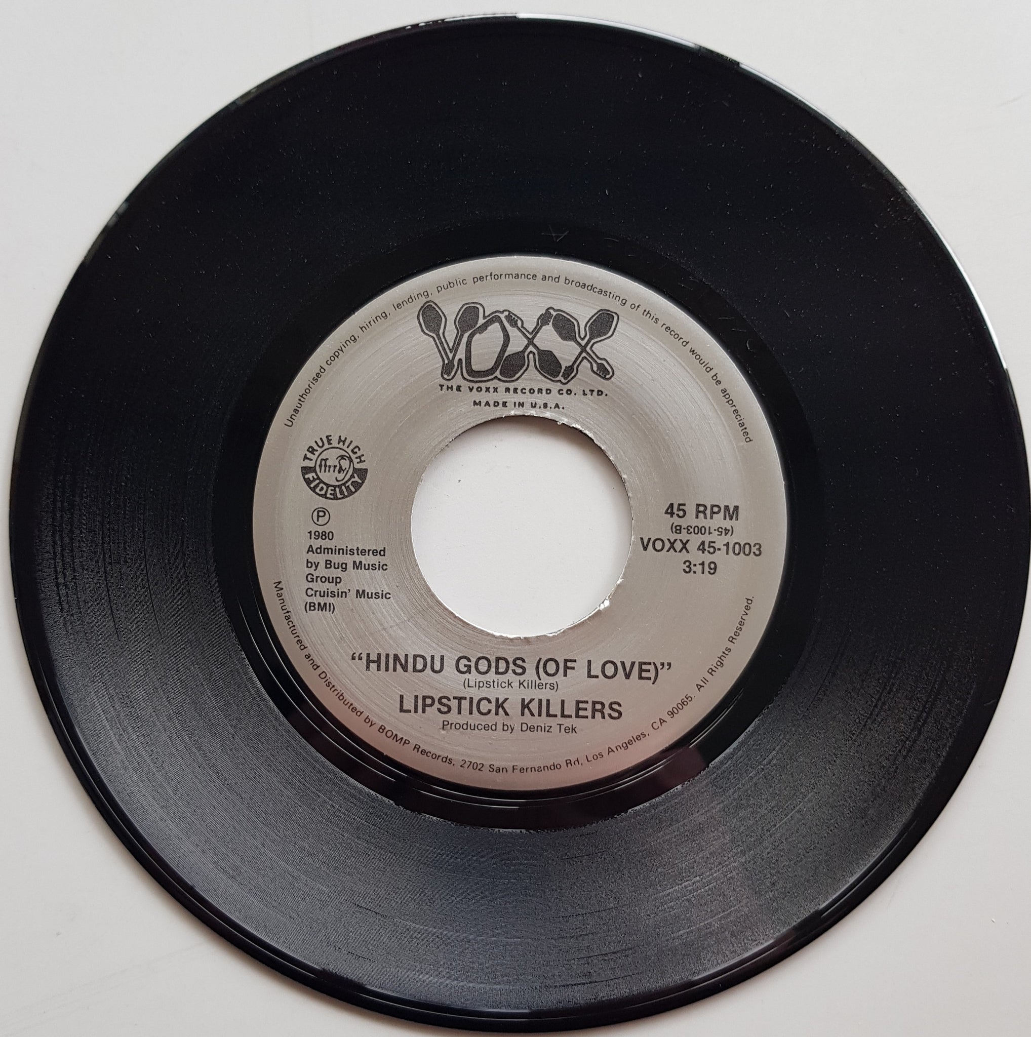 PS. 1990 Voxx Records VOXX 45-1003. Small price tag stain on sleeve