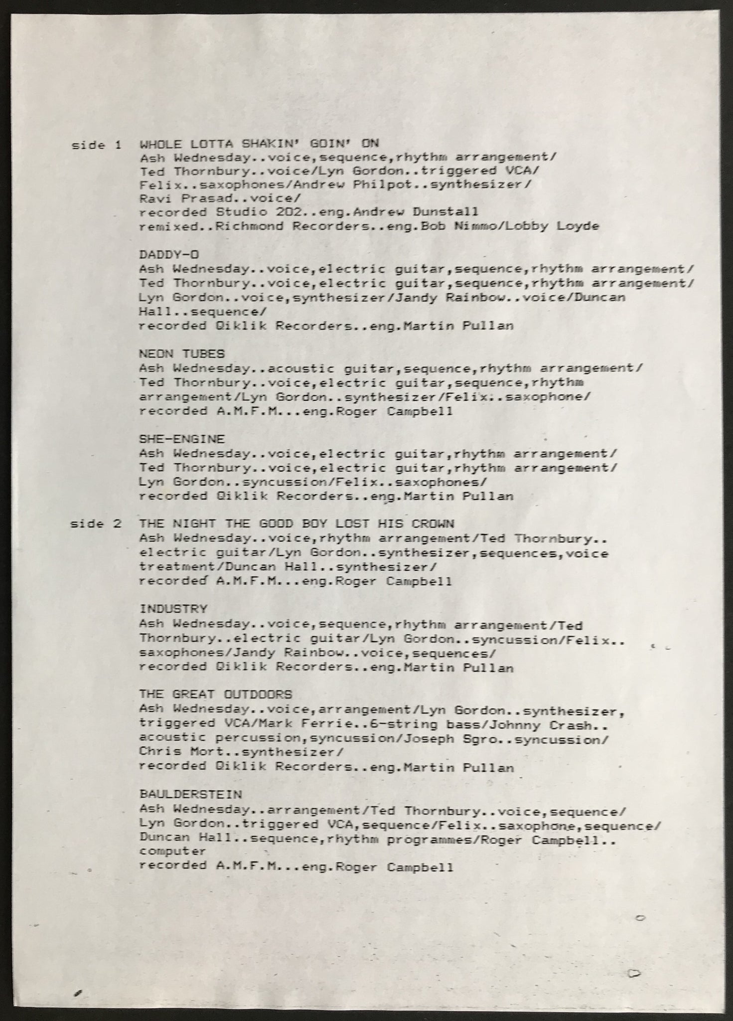 w.Insert. 1985 Cleopatra Records CLP 215. Super Clean Copy. METRONOMES (ASH WEDNESDAY)