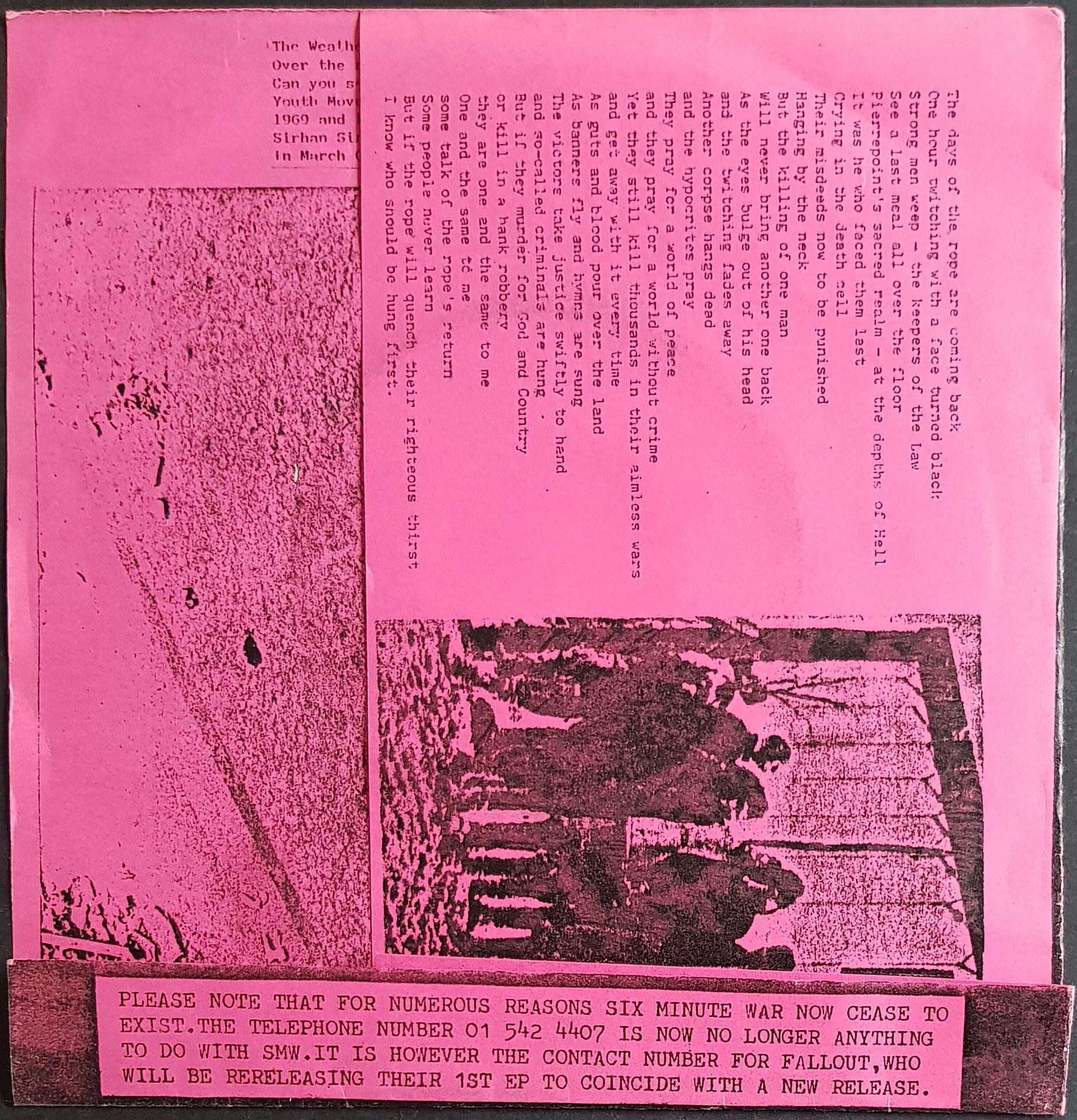 w.Pink Sleeve. 1981 SMW+003. Stored in PVC cover that has reacted to the print on the sleeve and caused a haze effect to the vinyl. Some of this print has adhered to the label.