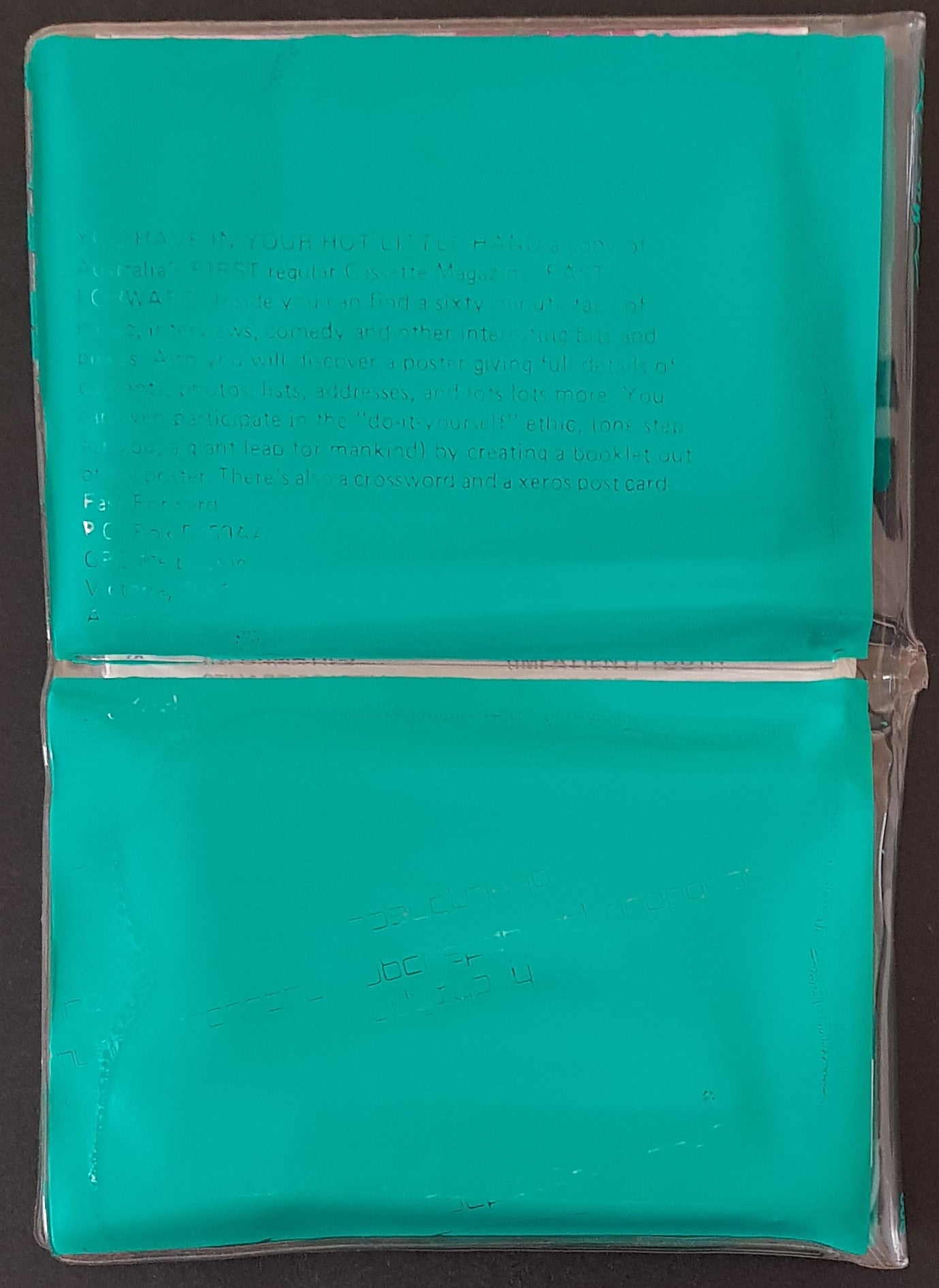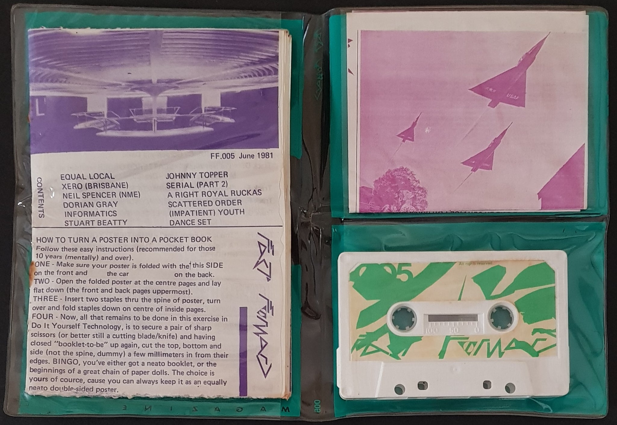 Fanzine - June 1981. Housed in 5"x8" Printed Plastic Cover (has been folded). Dorian Gray, Scattered Order, Xero, (Impatient) Youth, Johnny Topper, Equal Local. Fold Out Insert Magazine has been fashioned into a booklet. It has been cut into small pieces and stapled.