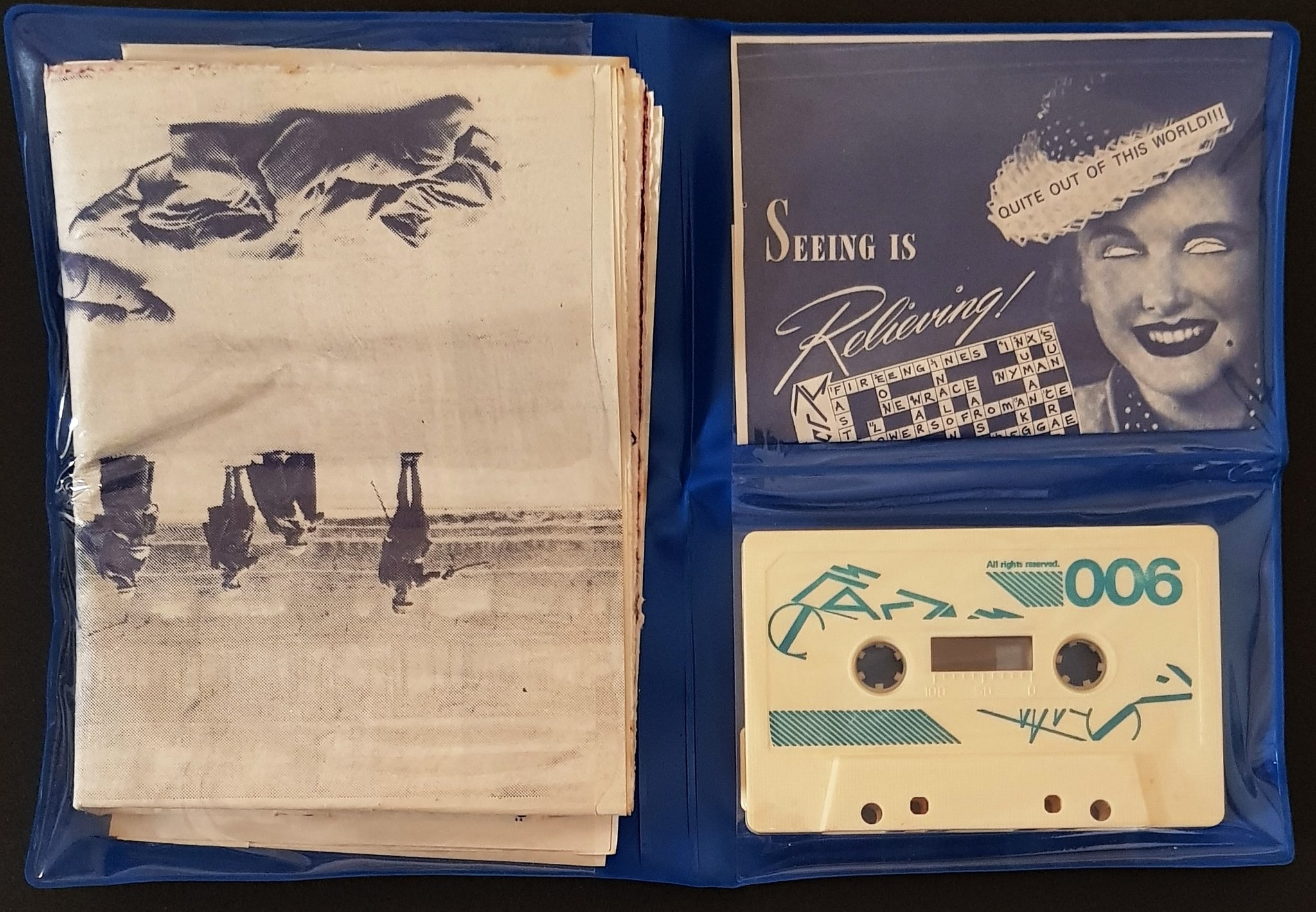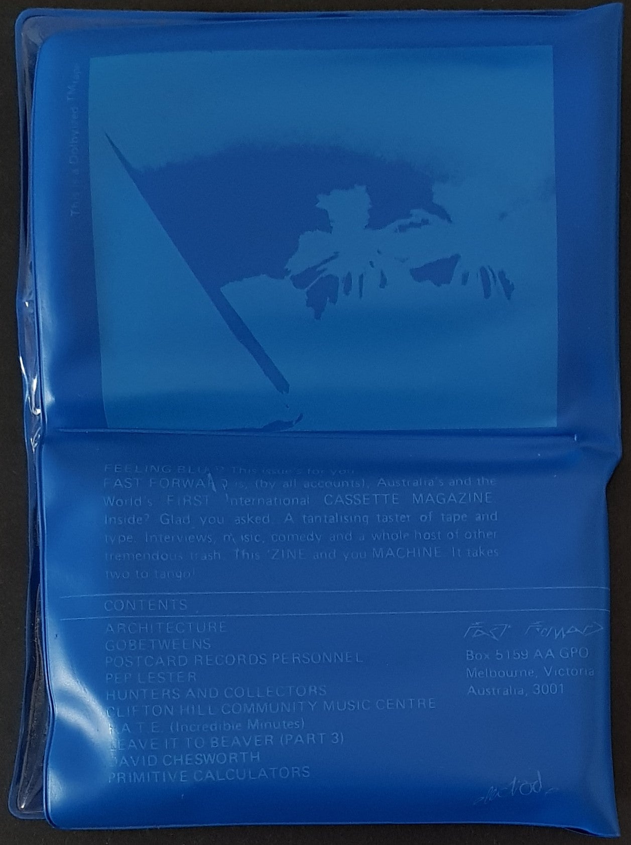 Fanzine - August 1981. Housed in 5"x8" Printed Plastic Cover (has been folded). Go-Betweens, Primitive Calculators, David Chesworth, Johnny Topper, Hunters & Collectors. Fold Out Insert Magazine has been fashioned into a booklet. It has been cut into small pieces and stapled.