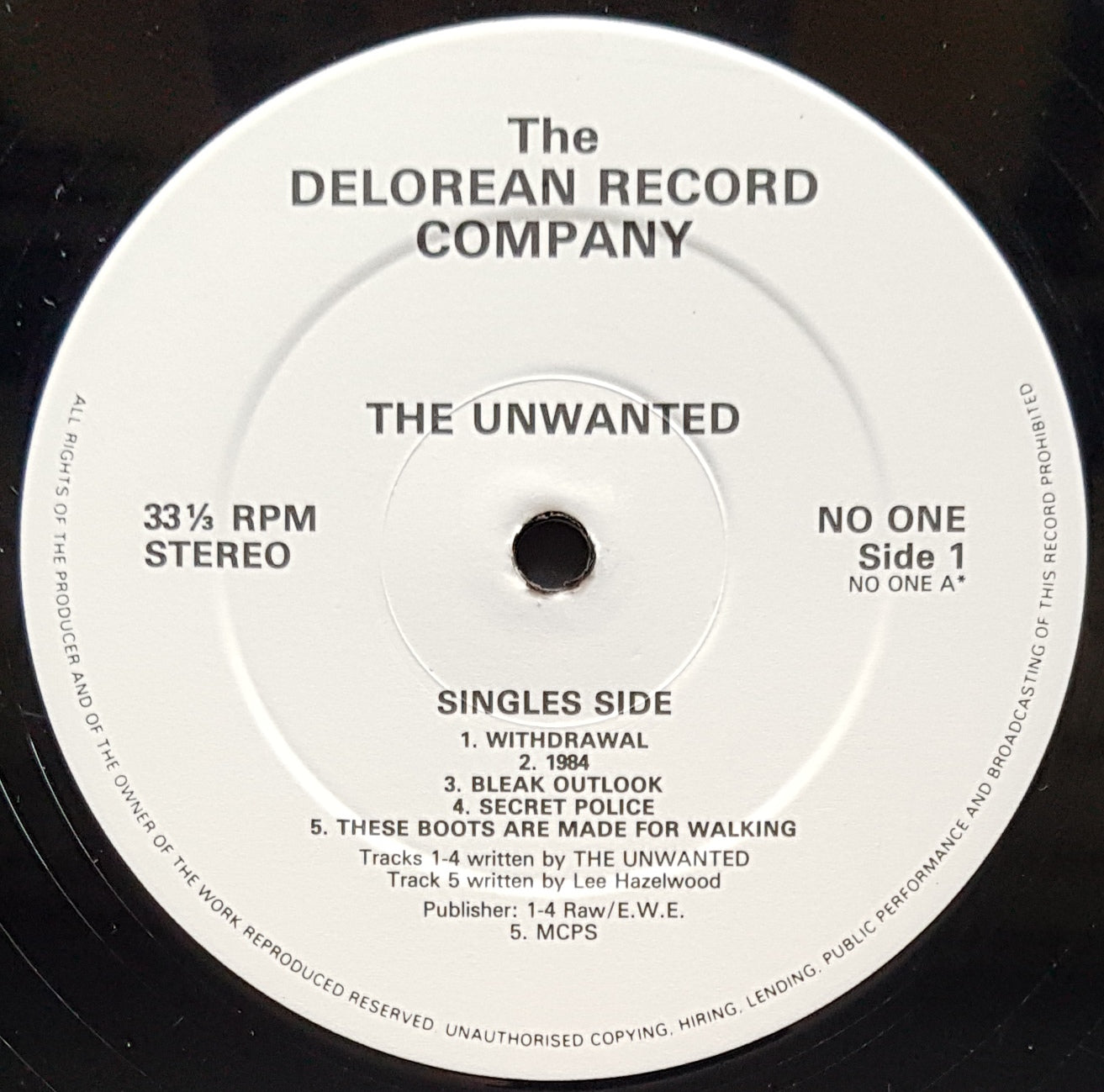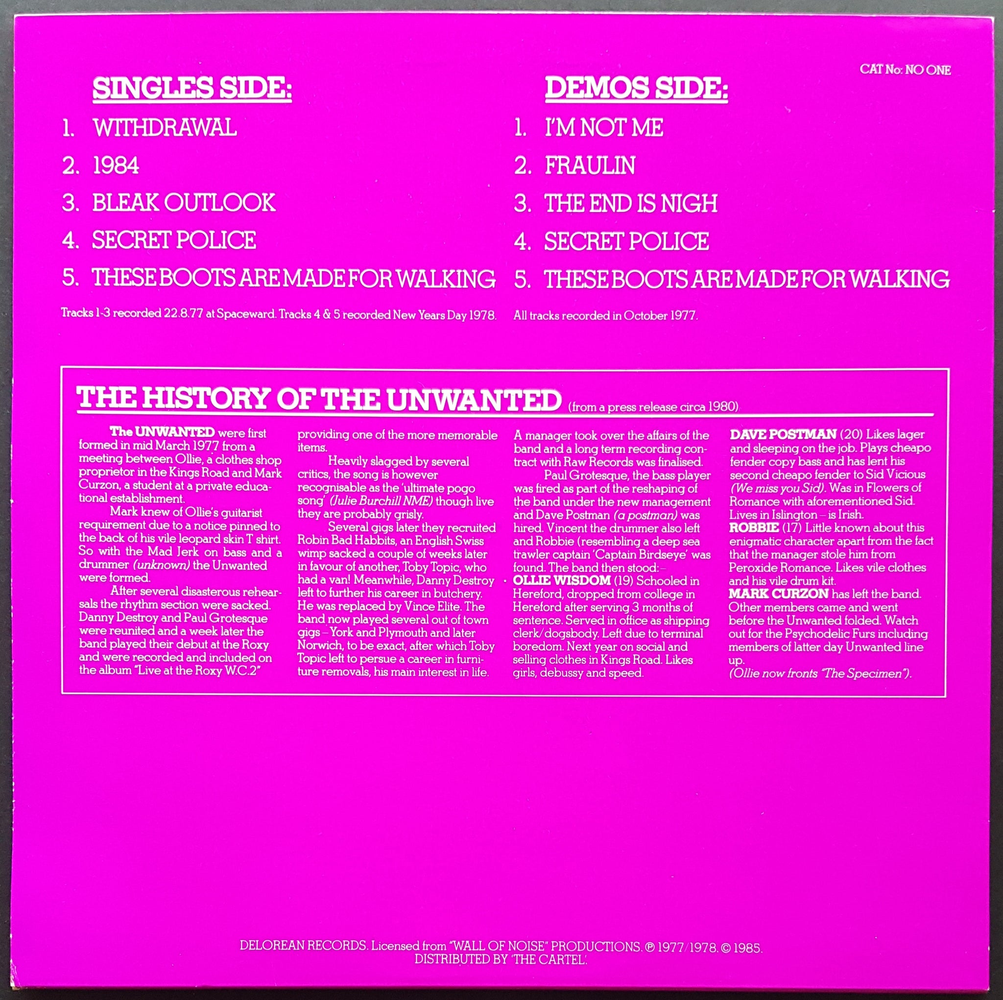 Compilation of Single & Demo Tracks from 1977/78. 1985 DELOREAN Records NO-ONE