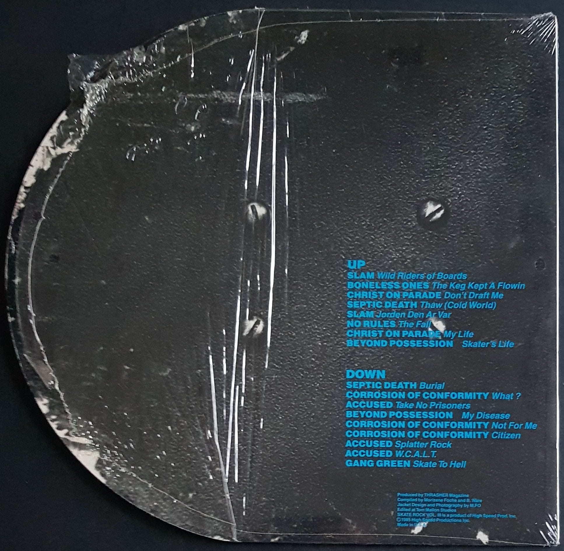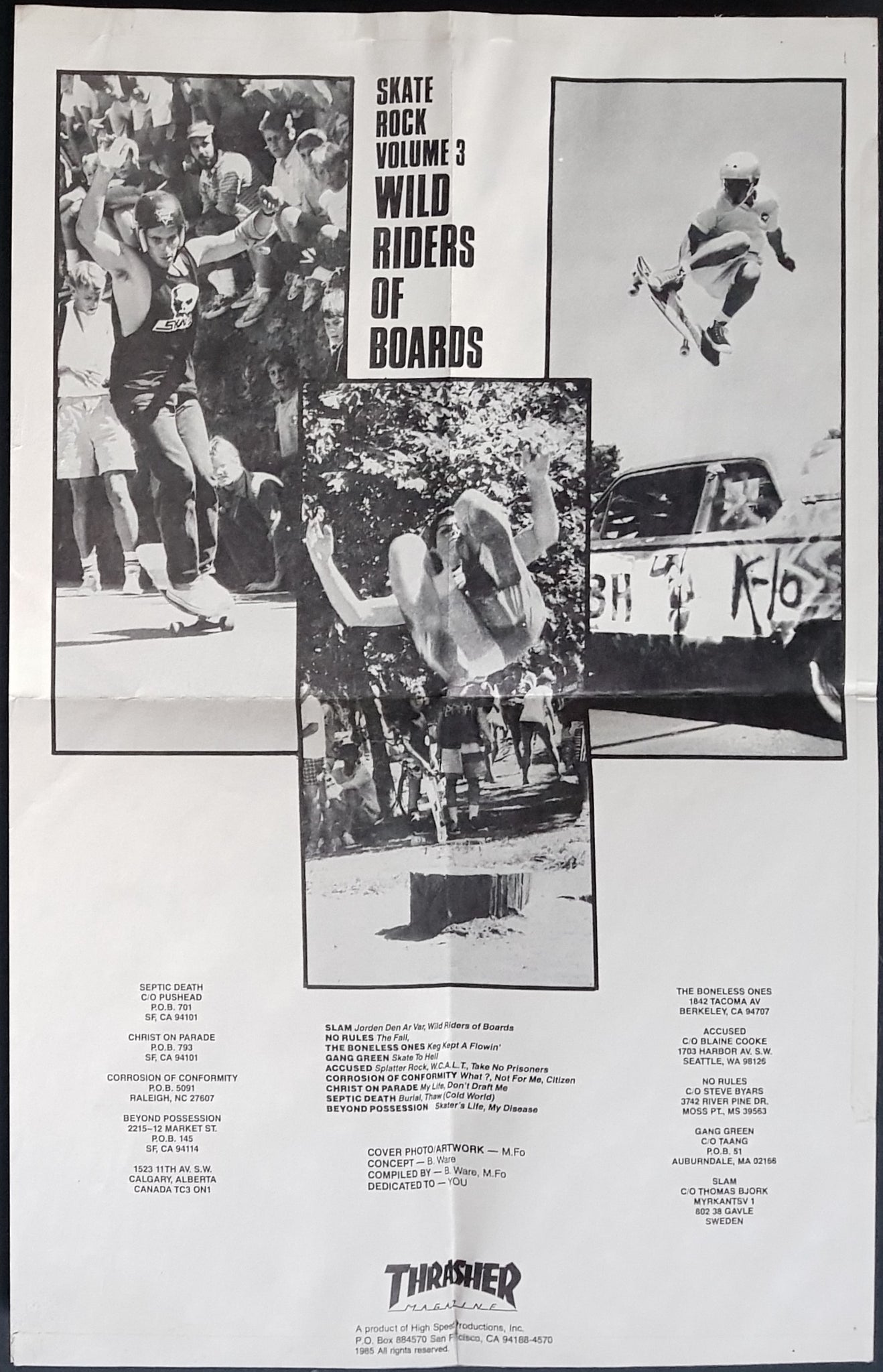 w.Insert (has clear tape along 3 edges). 1985 Thrasher Magazine 06662000. Cover has original shrink wrap. Minor wear and bumps along opening of cover. Features Septic Death, Corrosion Of Conformity, Accused, Gang Green +++