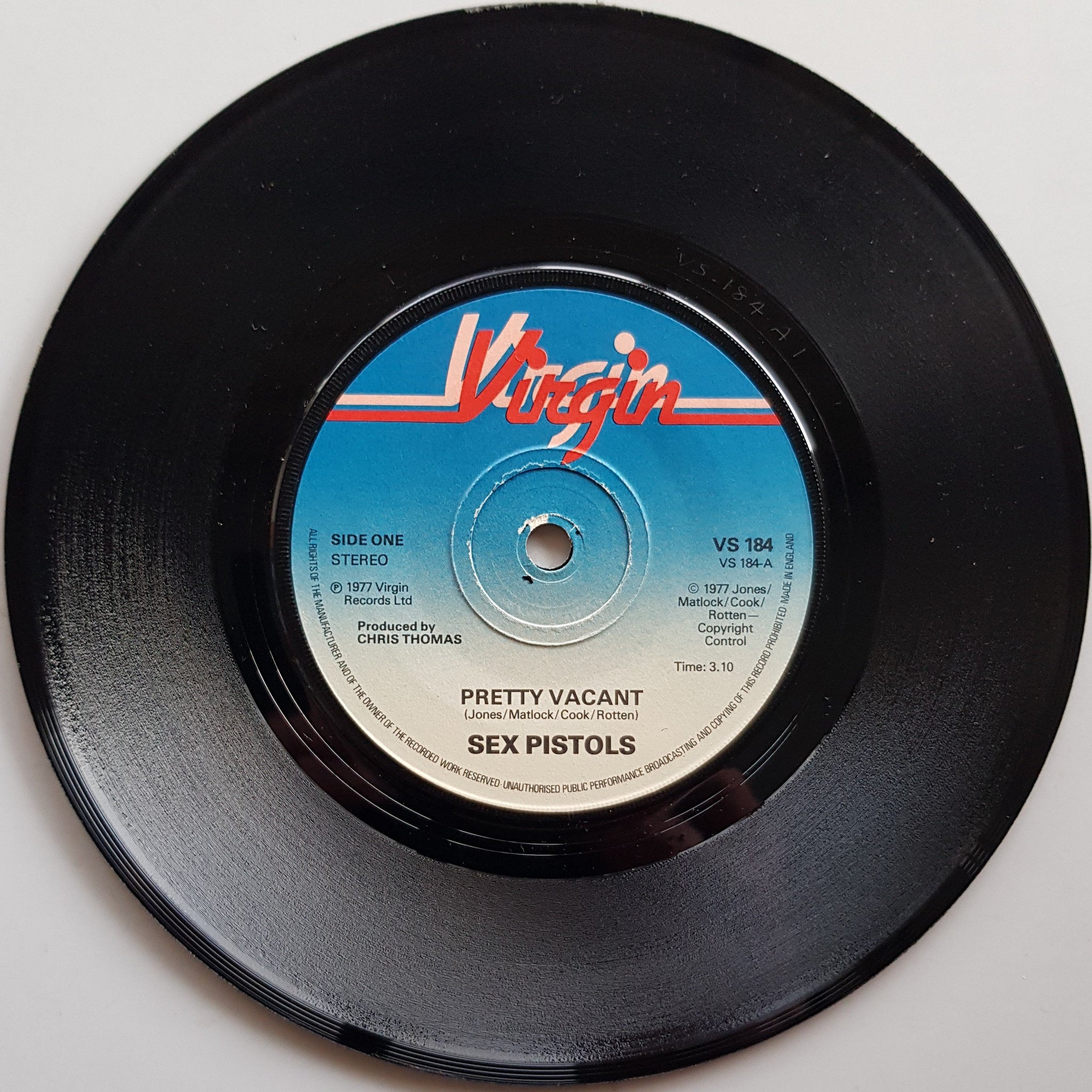 PS. 1977 VIRGIN Blue Label. Solid Centre. VS184. Sleeve Has Thin Strip Of Browning Along Opening Edge & Small Tear.