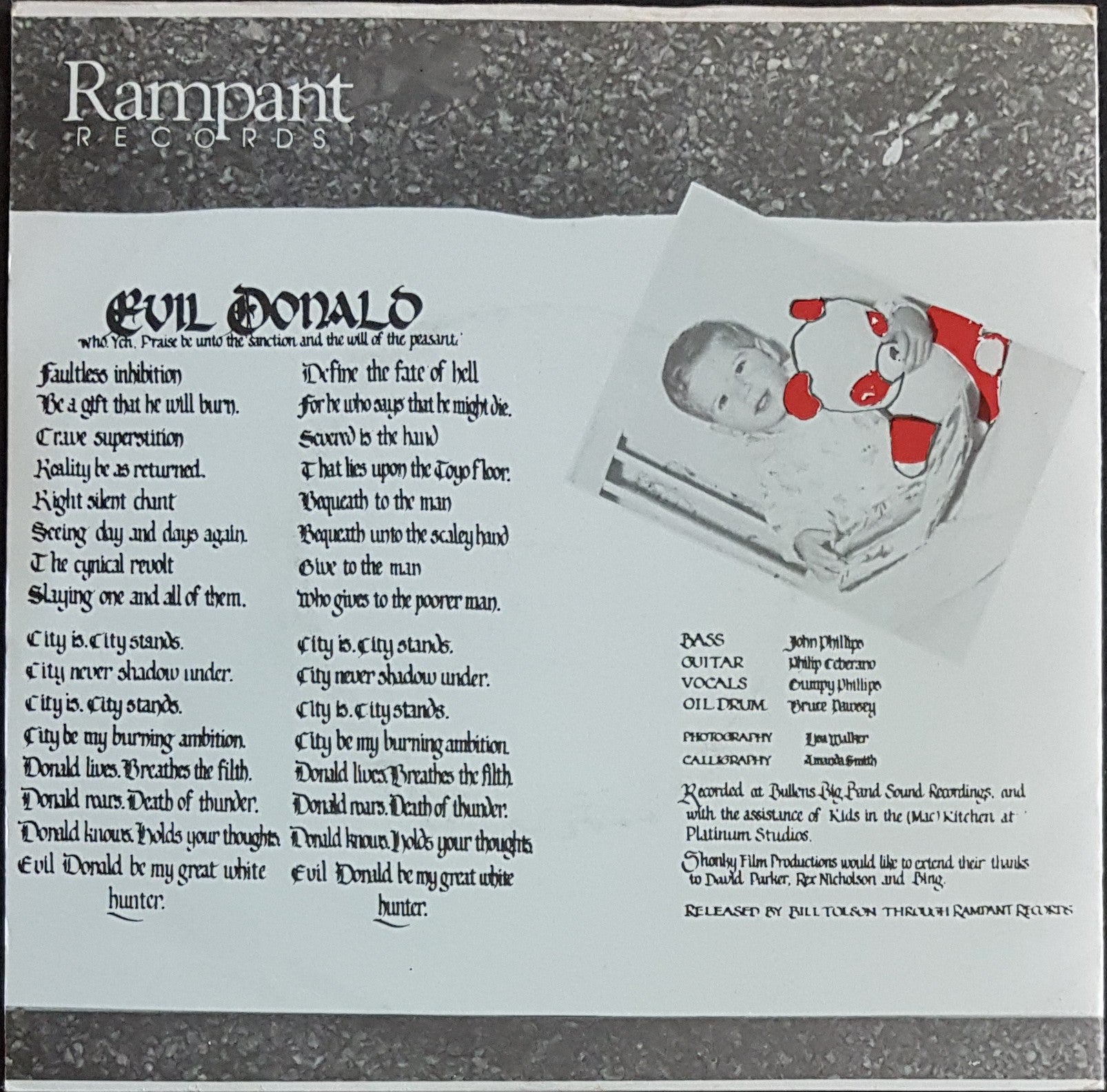 PS. 1985 Rampant Releases RR012. Minor wear along top of sleeve. Small price tag stain too.