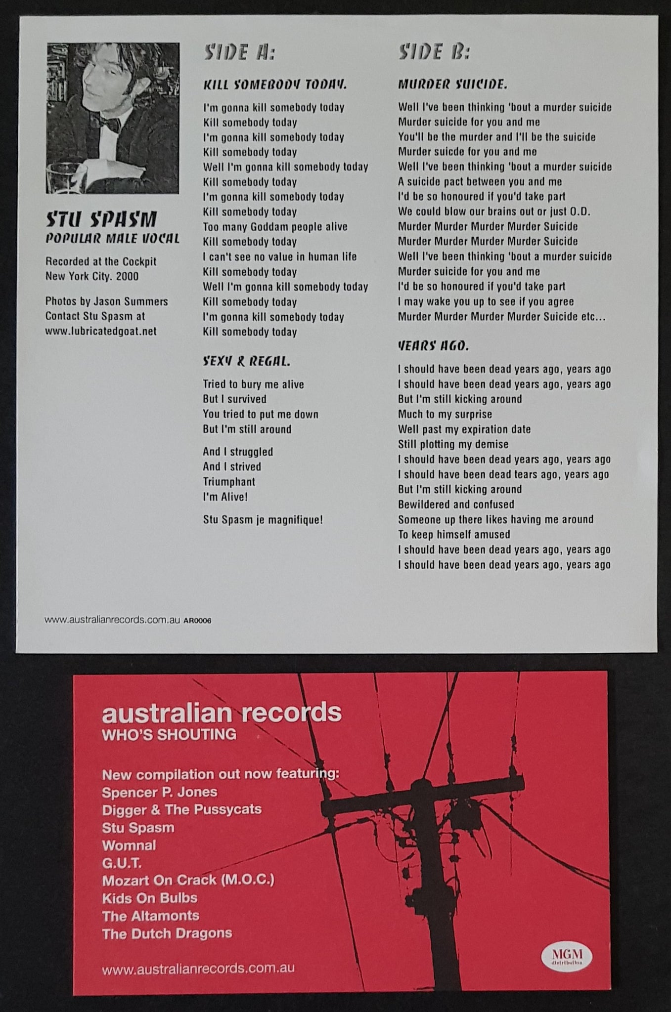 EP PS w.Lyrics sheet. 2004 Australian Records AR006. # 14 / 300 Copies.