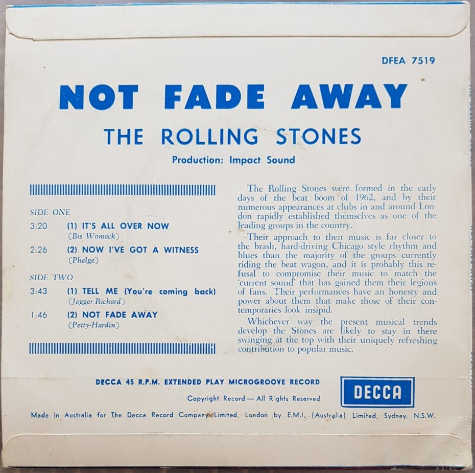 EP PS. 1964 Turquoise & Silver Unboxed DECCA Label DFEA-7519. In Flipback Sleeve. Cover Has Ring Impression, Light Scuffs & Corner Crease. Disc Is Very Clean