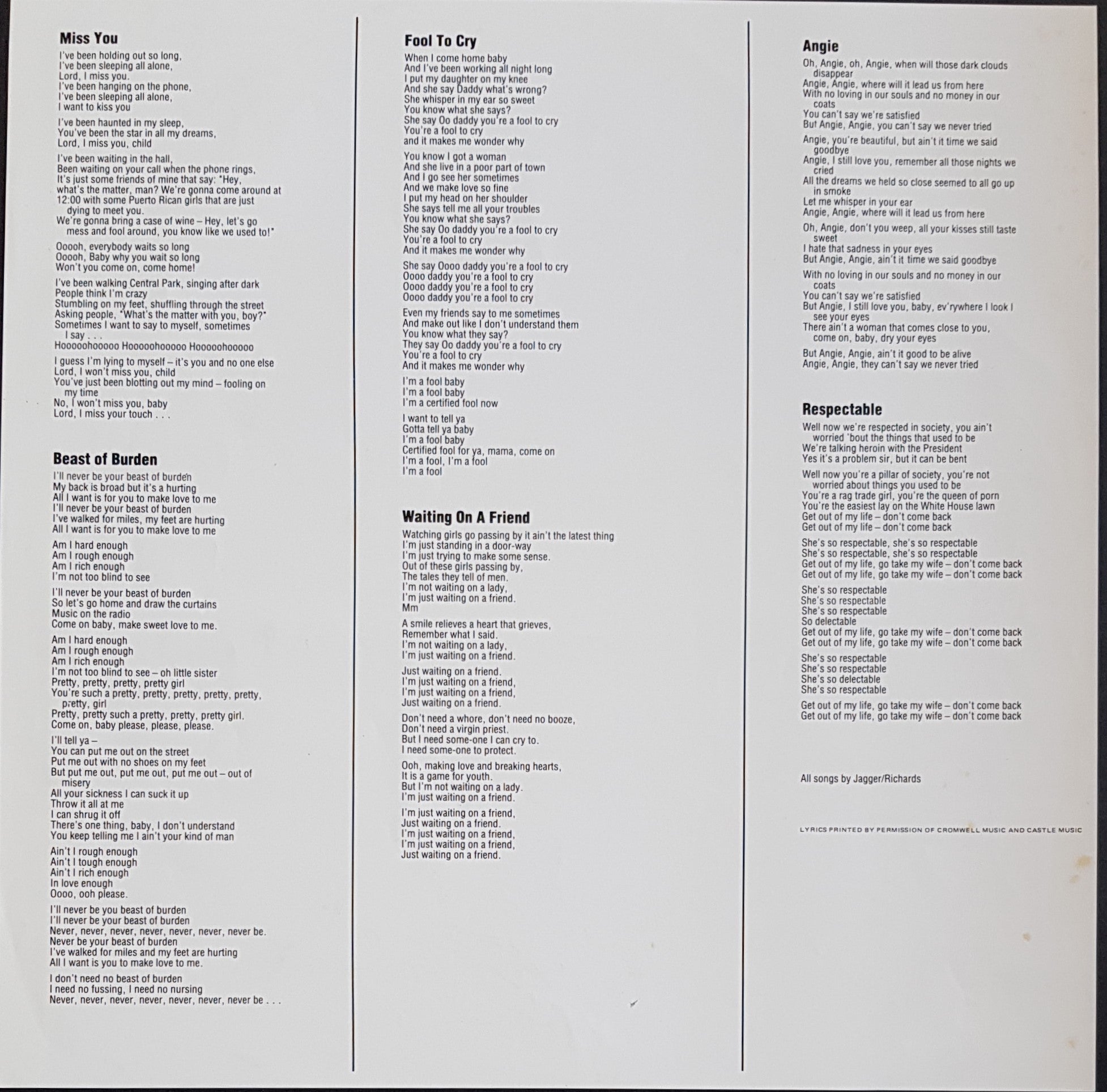 w.Insert. 1984 Rolling Stones Records / EMI PLAY-260106. MAXICUT. Minor Creases on Cover