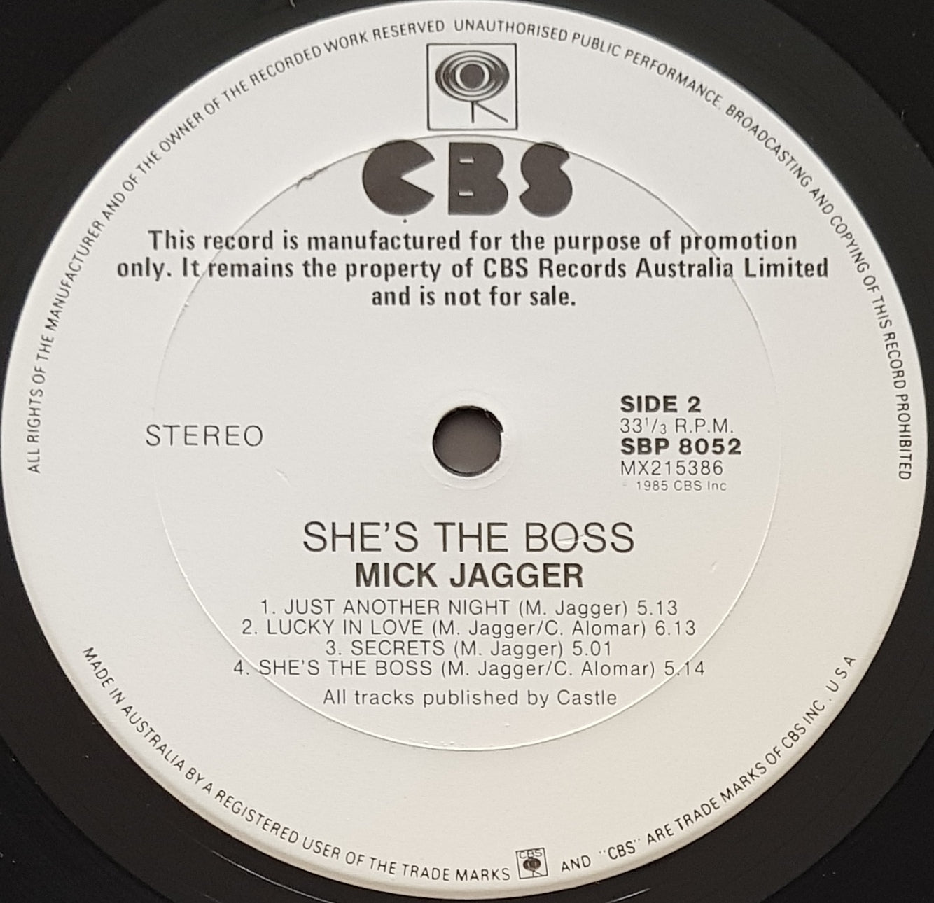 w.Inner. White Label Promo. 1985 CBS SBP 8052. Hype sticker on cover which has corner crease