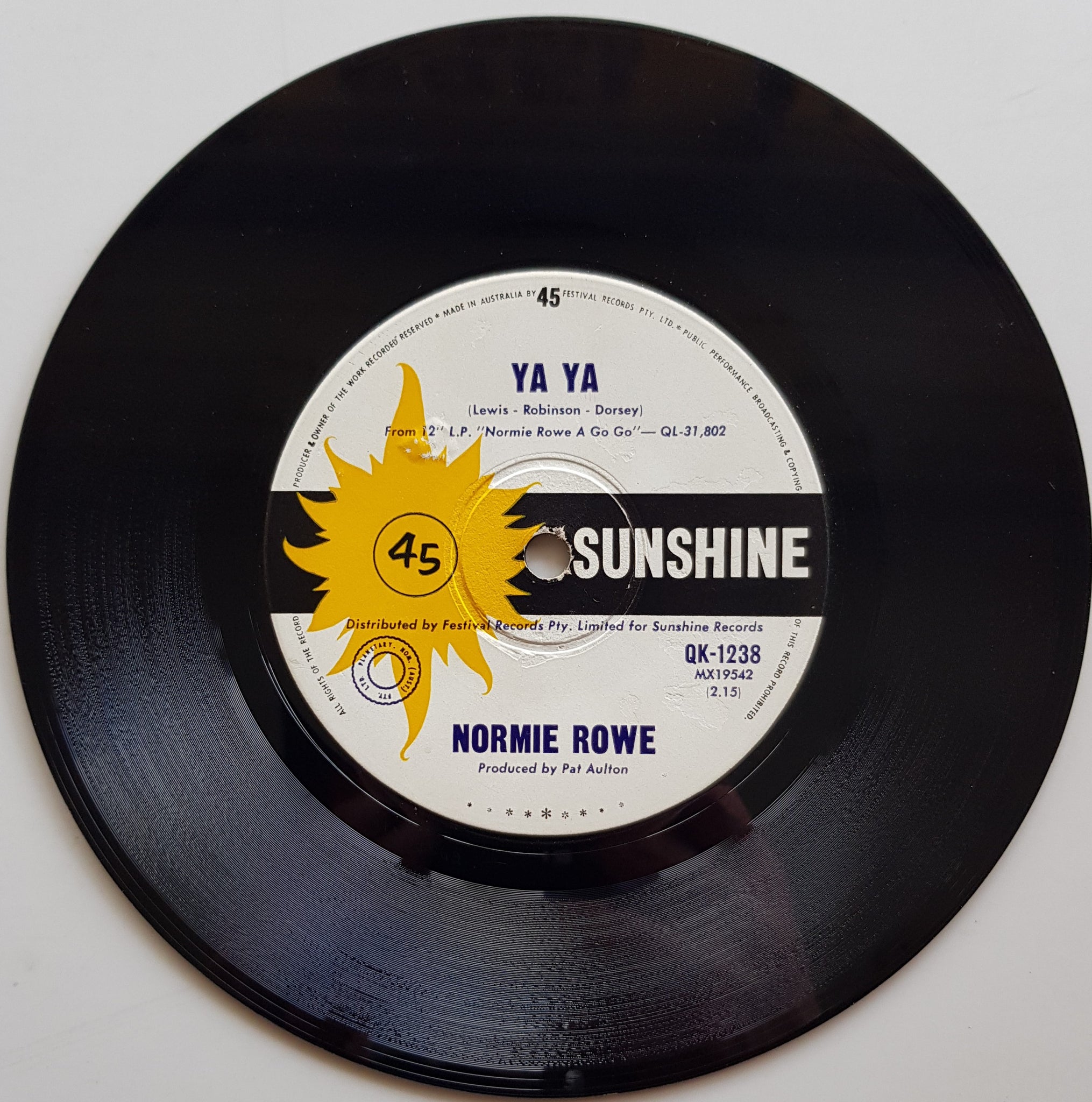 1966 SUNSHINE QK-1238. Tiny Label Tear on 'b' Side