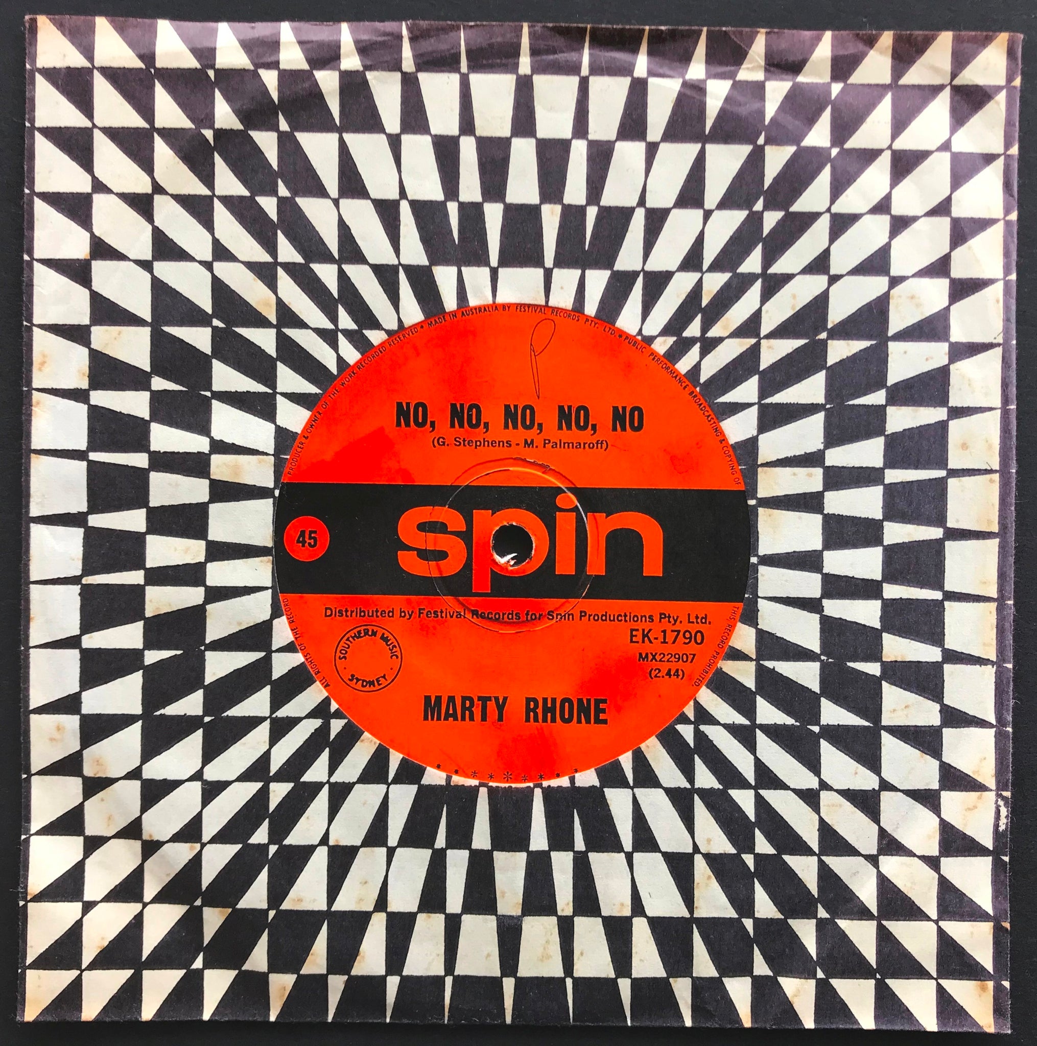 1967 Orange & Black SPIN Label. EK-1790. Pop outing from 1967 which works its way along on the back of an organ b/w late 60's jangly pop that borders on the lighter side of psych. Foxing, Sticker Stain & Writing on Labels.