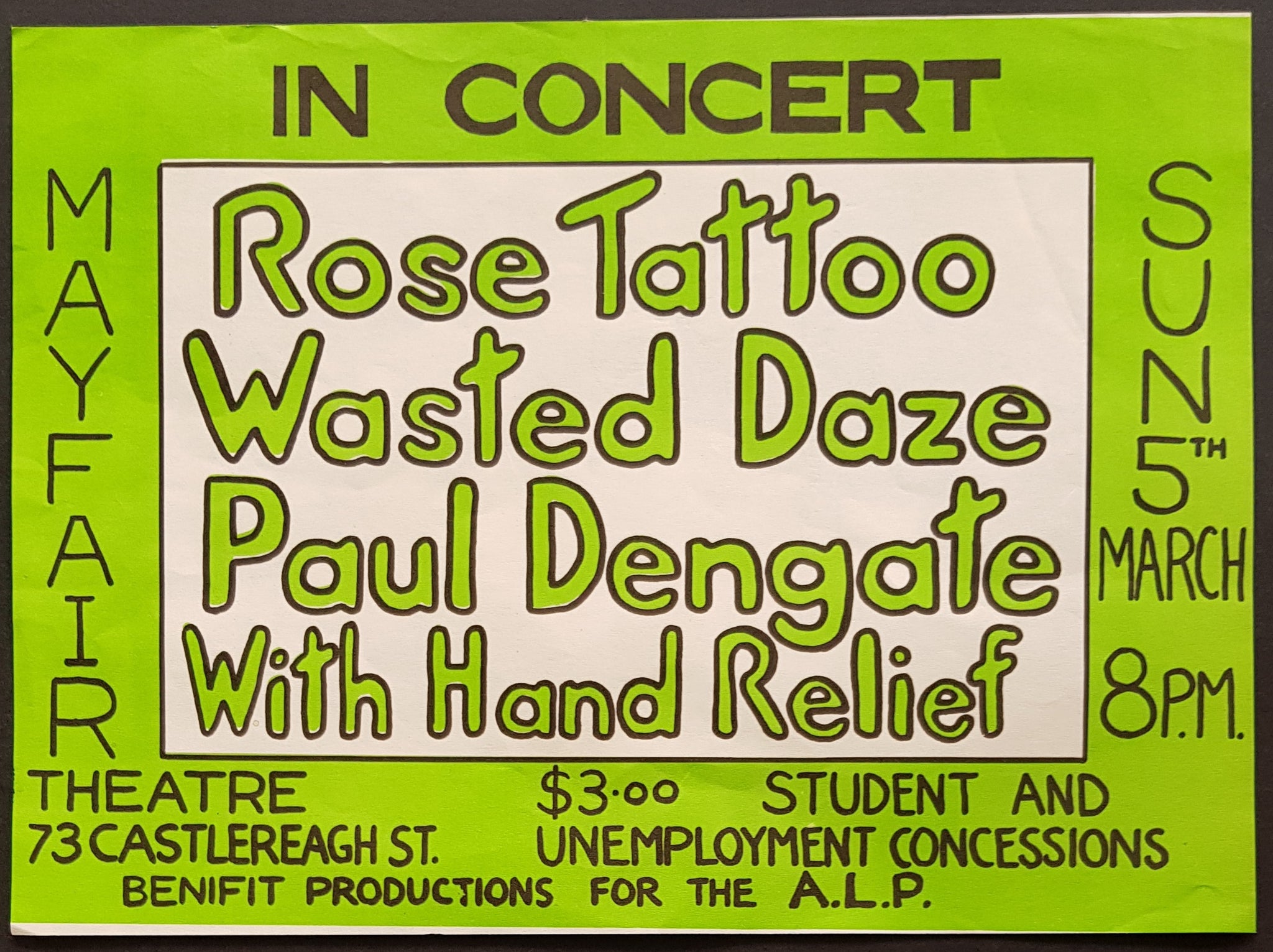 For Sunday March 5th, 1978 Show. Features Wasted Daze & Hand Relief. 28.5cm x 21cm