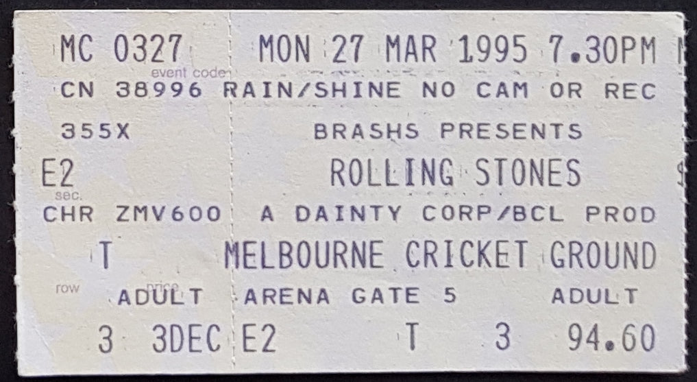 For Monday March 27th Show at the Melbourne Cricket Ground
