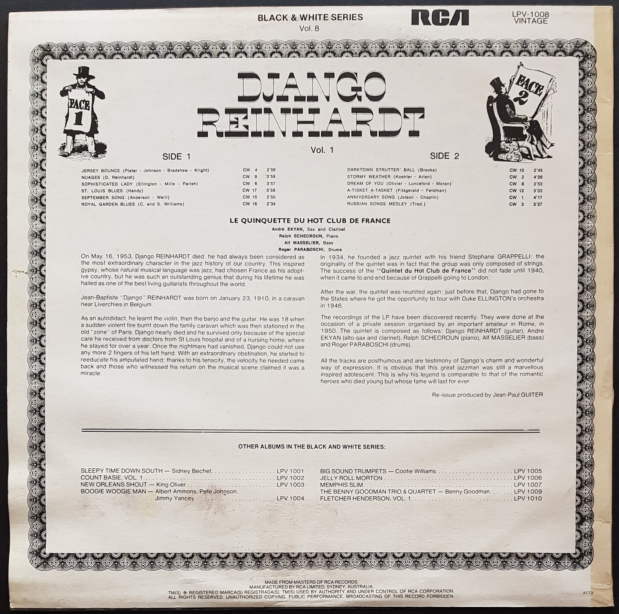 1973 RCA / VICTOR Release LPV-1008 Vintage / Black & White Series. Cover has laminate lifting in parts and minor foxing on back.
