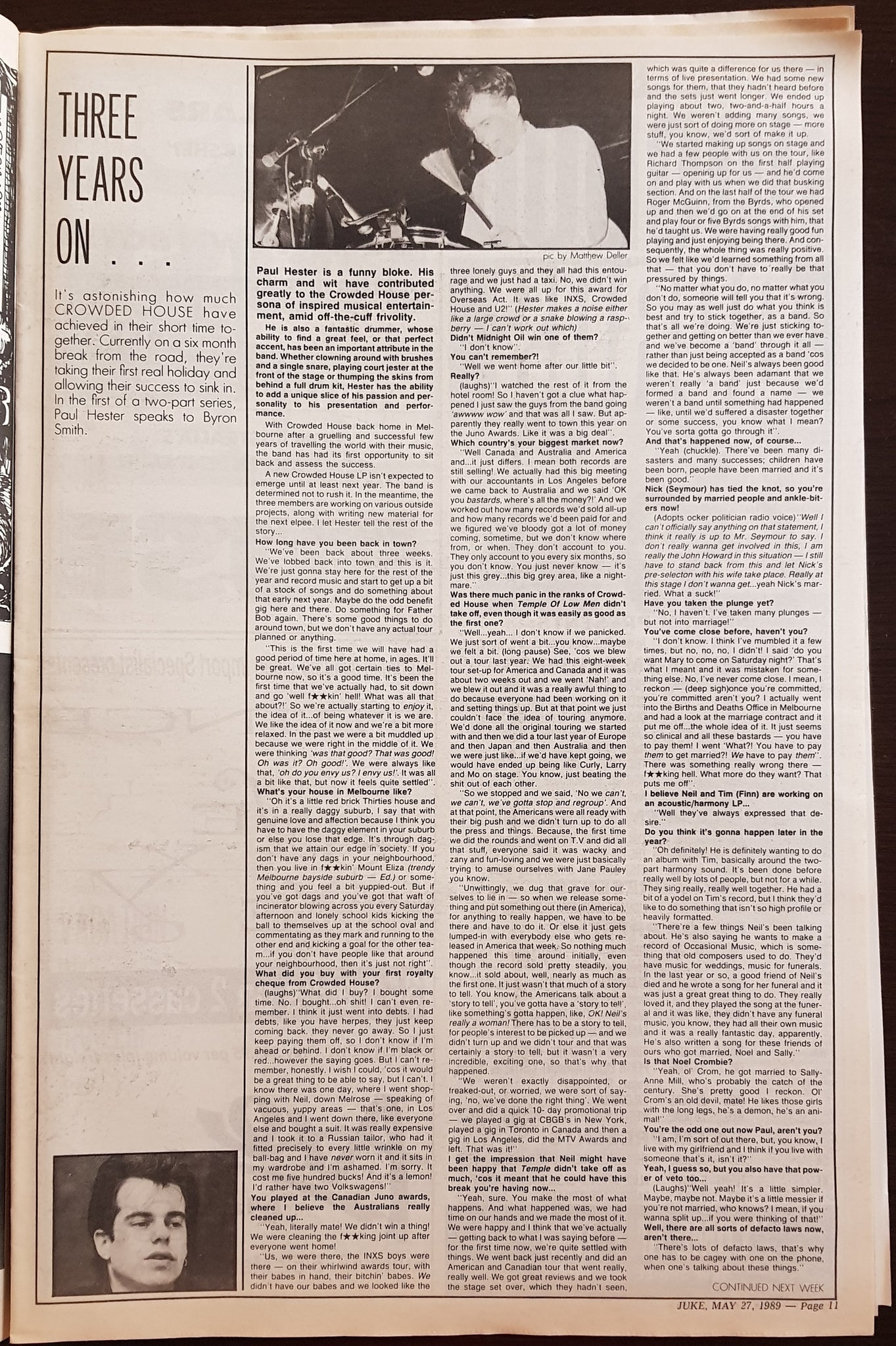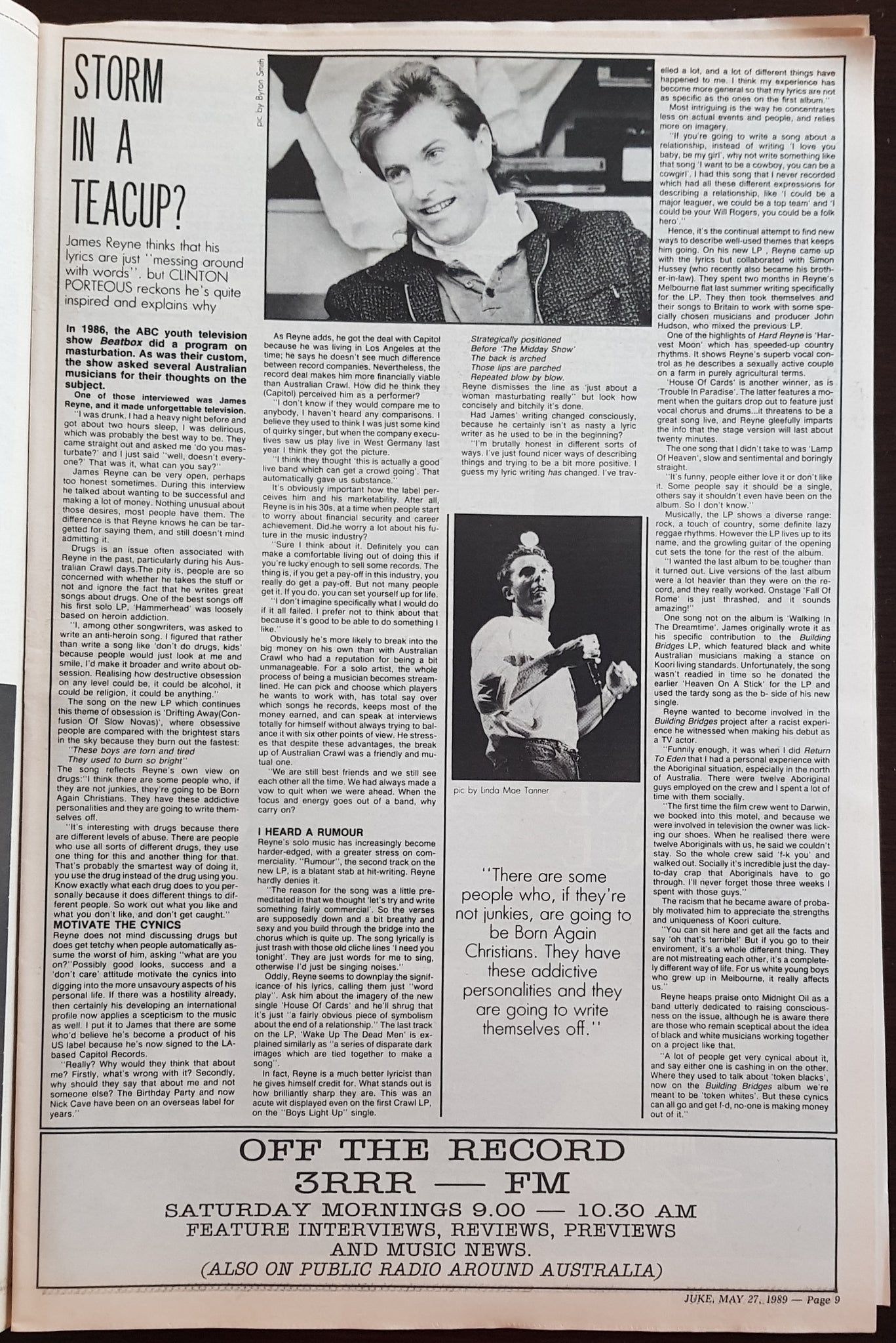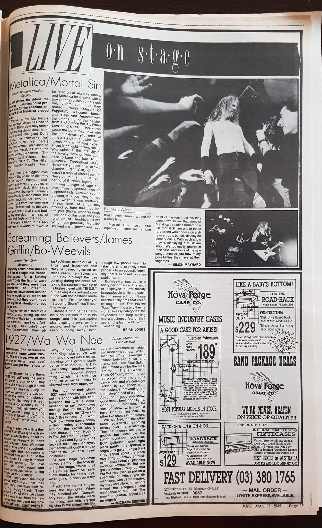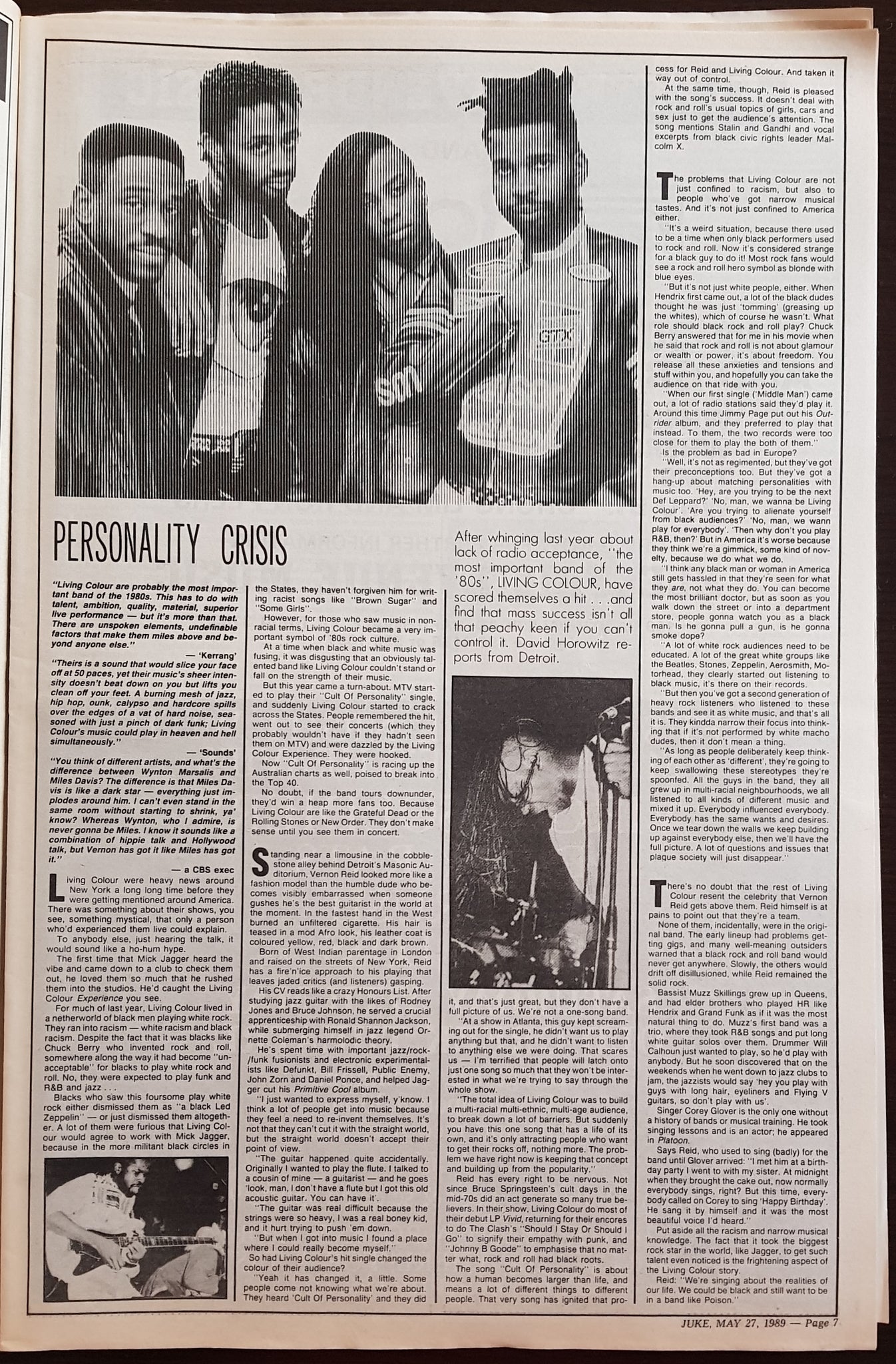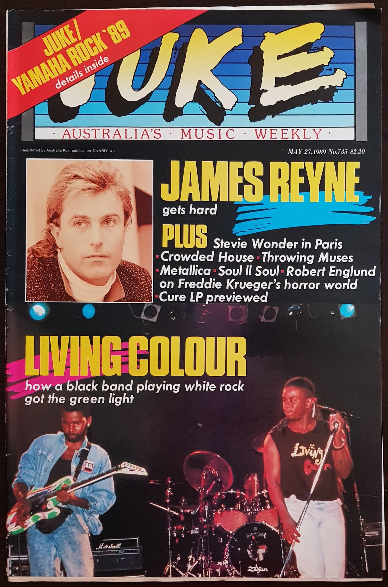 w. James Cover & Article. Issue Also Features, Reviews And Or Has Ads For Living Colour, Crowded House, Metallica, Mortal Sin, Wa Wa Nee + Others. Writing on back cover.
