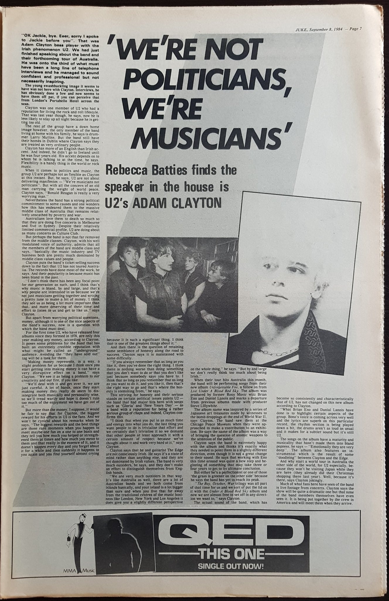 w. Angry Cover & Article. Issue Also Features, Reviews And Or Has Ads For U2, The Fall, Cockroaches, Mike Oldfield, The Church, Beasts Of Bourbon + Others.