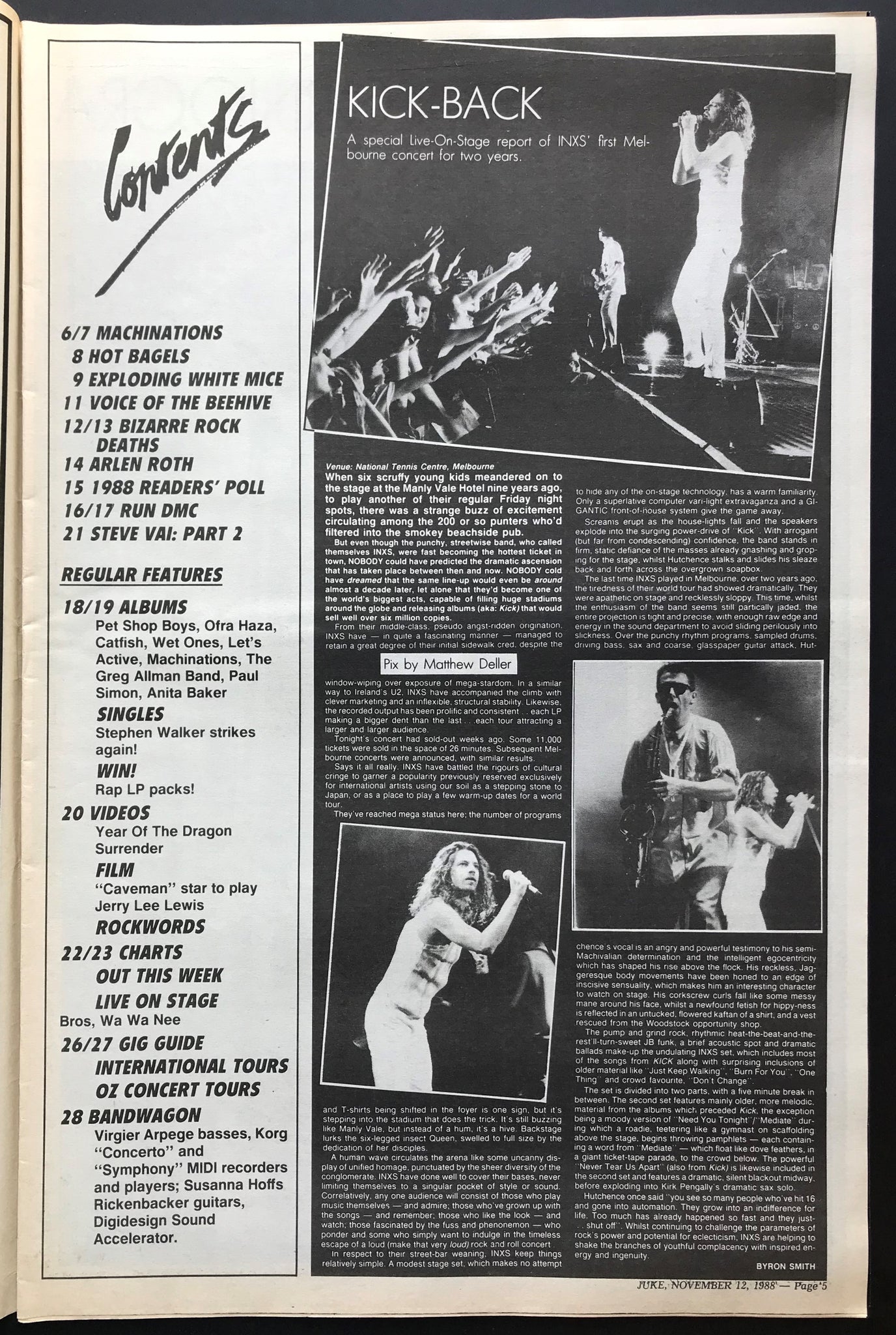 w. Run DMC Cover & Article. Issue Also Features, Reviews And Or Has Ads for Midnight Oil, Hoodoo Gurus, INXS, Machinations, Exploding White Mice, Steve Vai, Bros & others.