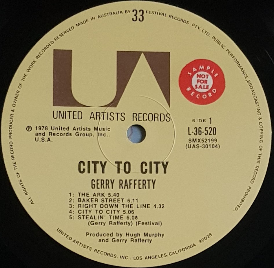 1978 Beige & Brown United Artists Records Label L36520. Minor Wear and Creases on Cover. Sample sticker on label.