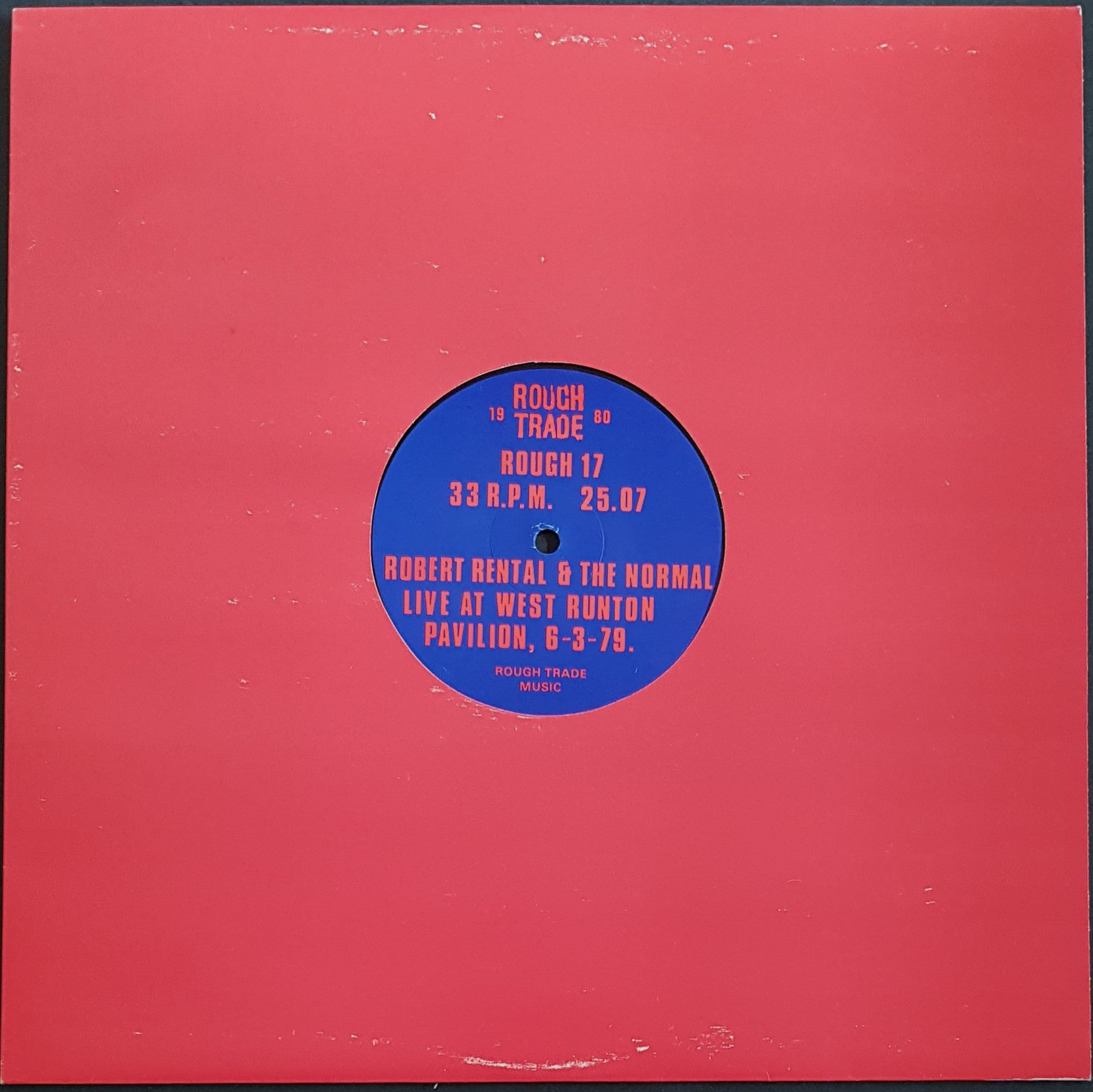 One-Sided. 1980 Rough Trade ROUGH 17. Issued in plain red die-cut sleeve. Haze effect on disc.