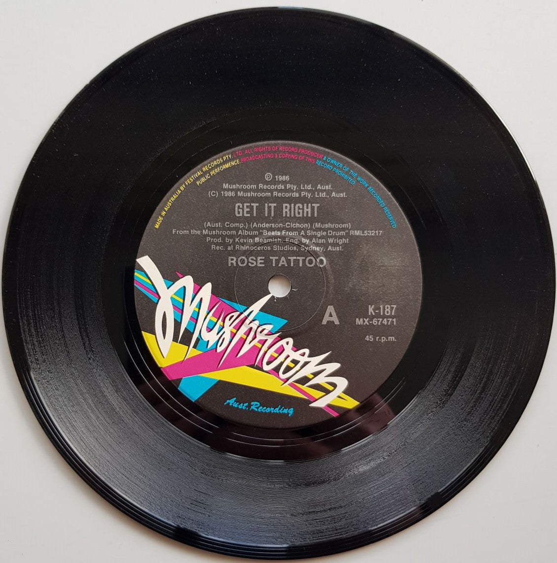 PS. 1986 MUSHROOM Records K187. Minor Wear on Sleeve