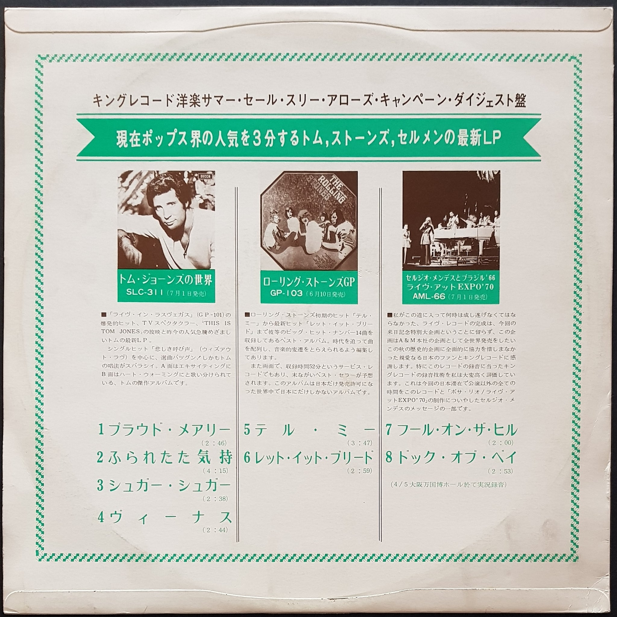 White Label Promo Only Sampler w. Great Printed Cover Pictures 'Golden Prize' Art on Back Along w. 2 Other Non-related Releases. LP Has Let It Bleed & Tell. Cover Has Ring Wear, Ageing Spots & Small Seam Split. DY4507~3