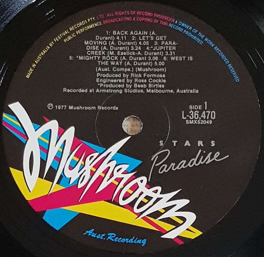w.Inner Sleeve (has heavy foxing). 1977 Mushroom L-36470. Record has minor spots of haze and is otherwise very clean.