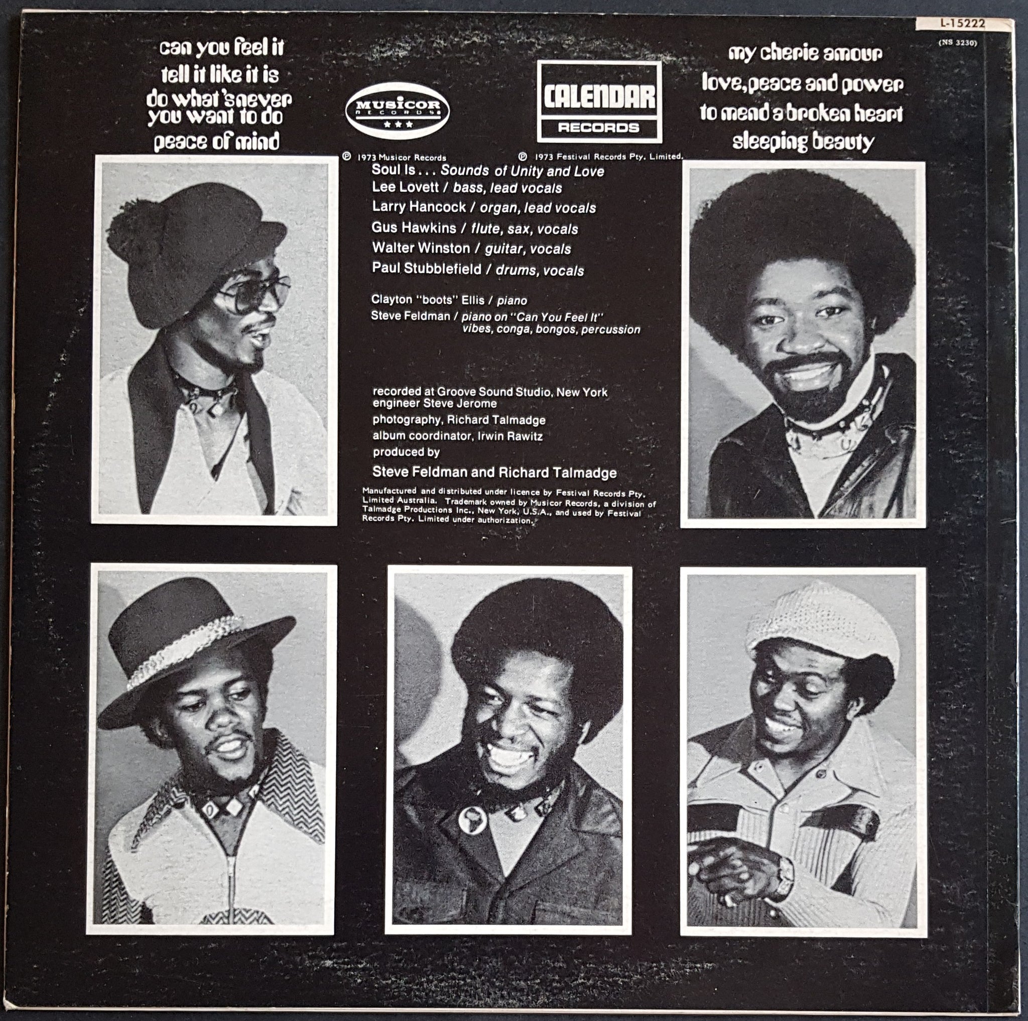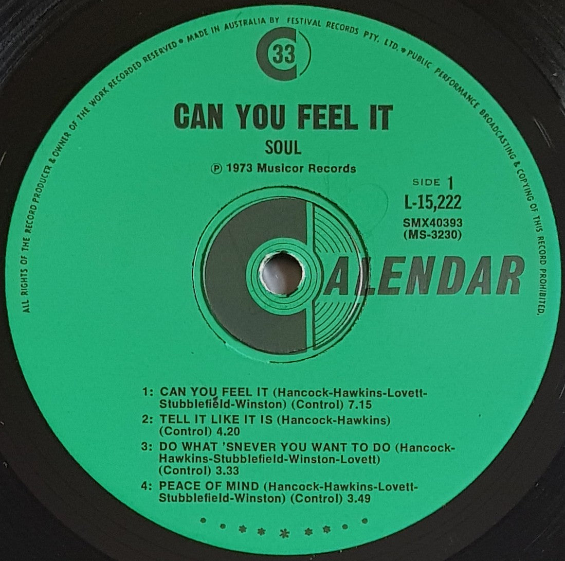 1973 Calendar Records L-15222. Laminated front cover has minor scuff / wear marks. Creases along spine. Minor ring wear on back cover. Disc is very clean with some superficial scuffs. One mark on Love, Peace And Power, ticks for about 1/4 of the track