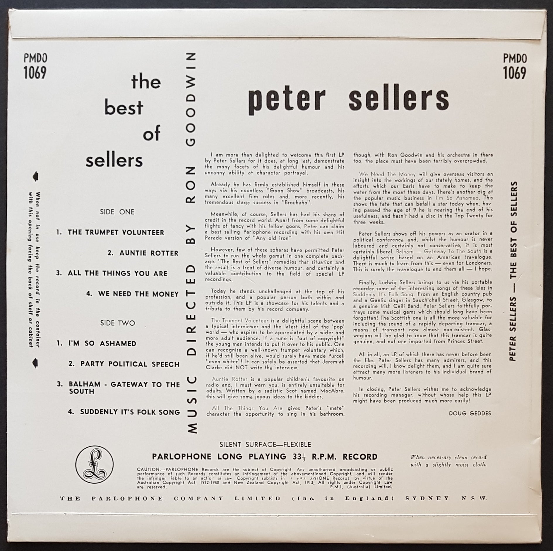 LP. Black/Yellow/Silver PARLOPHONE Label PMDO1069. Flip Back Cover
