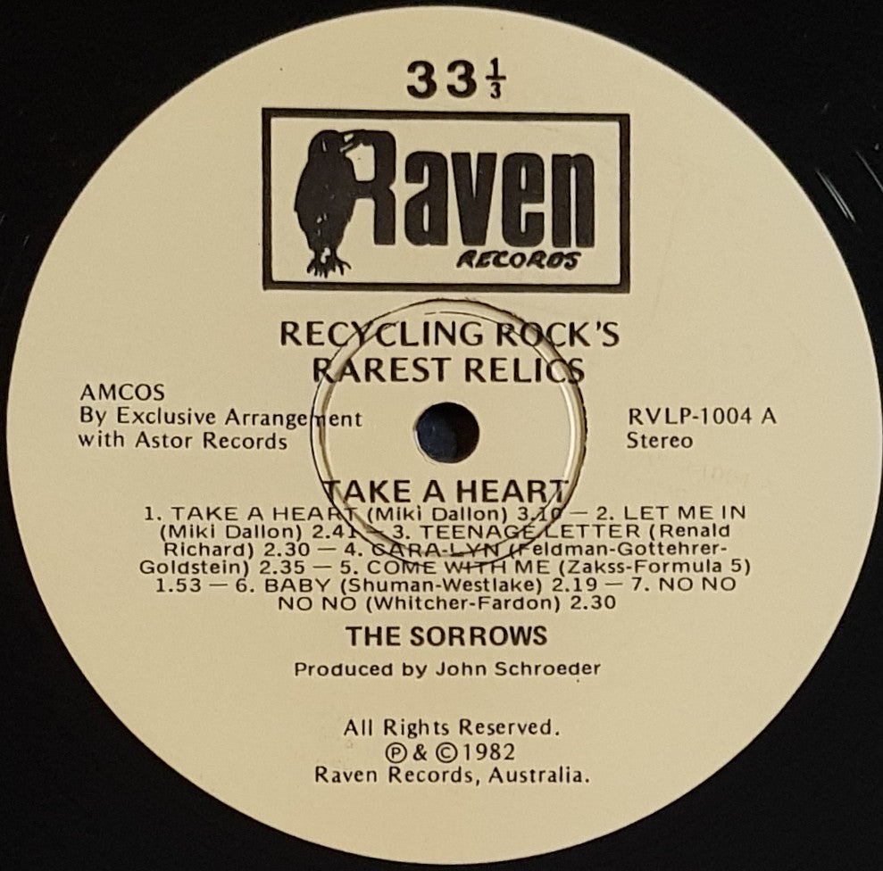 14 Track Compilation. 1982 Raven Records RVLP-1004. Minor corner crease, light wear to laminated front and foxing on rear. One minor scuff on otherwise clean disc.