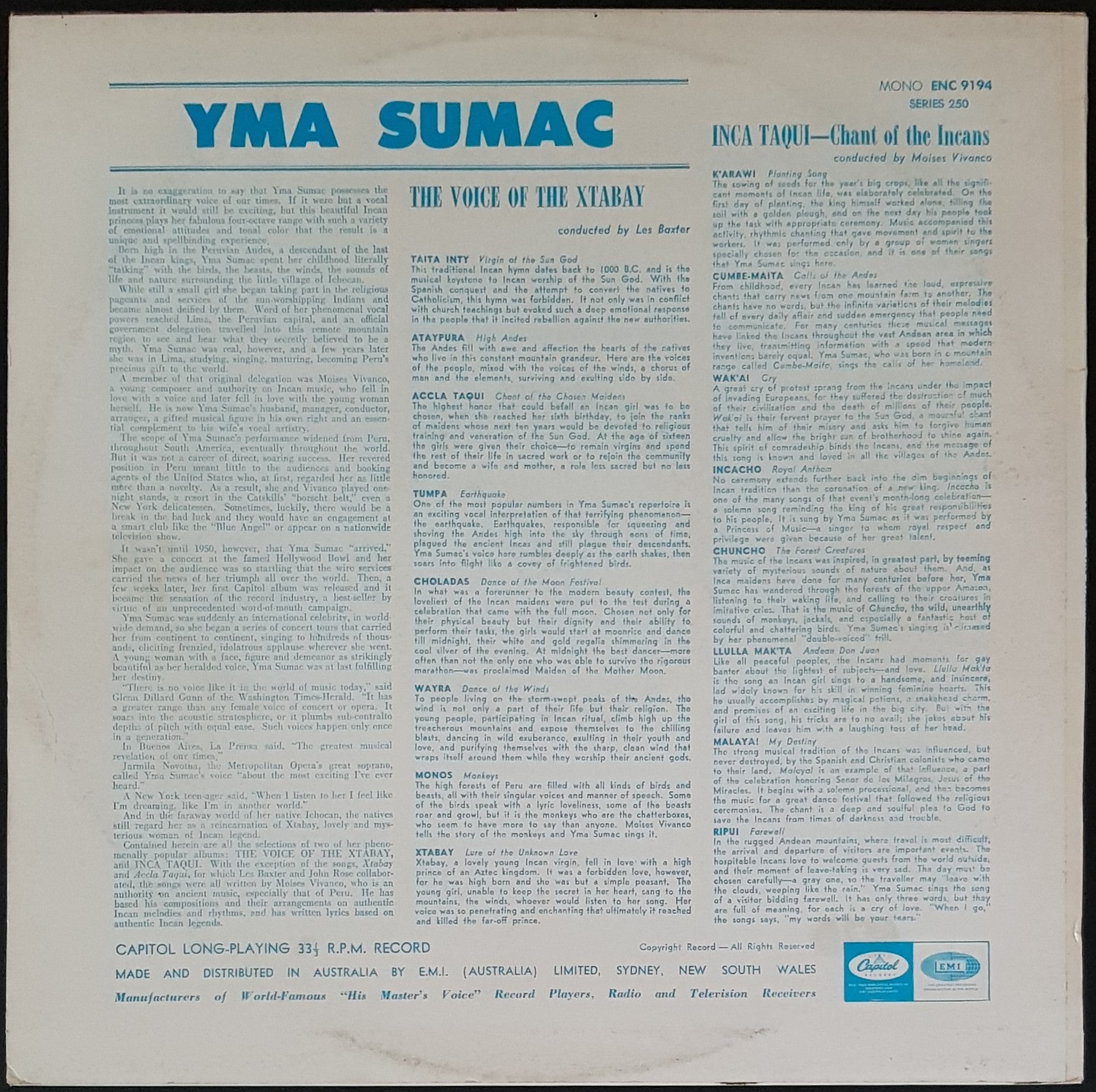 Re-issue. 1970's Capitol Records / Encore Series ENC-9194. Minor ring wear, sticker stain & foxing on back cover. Clean disc with light scuffs