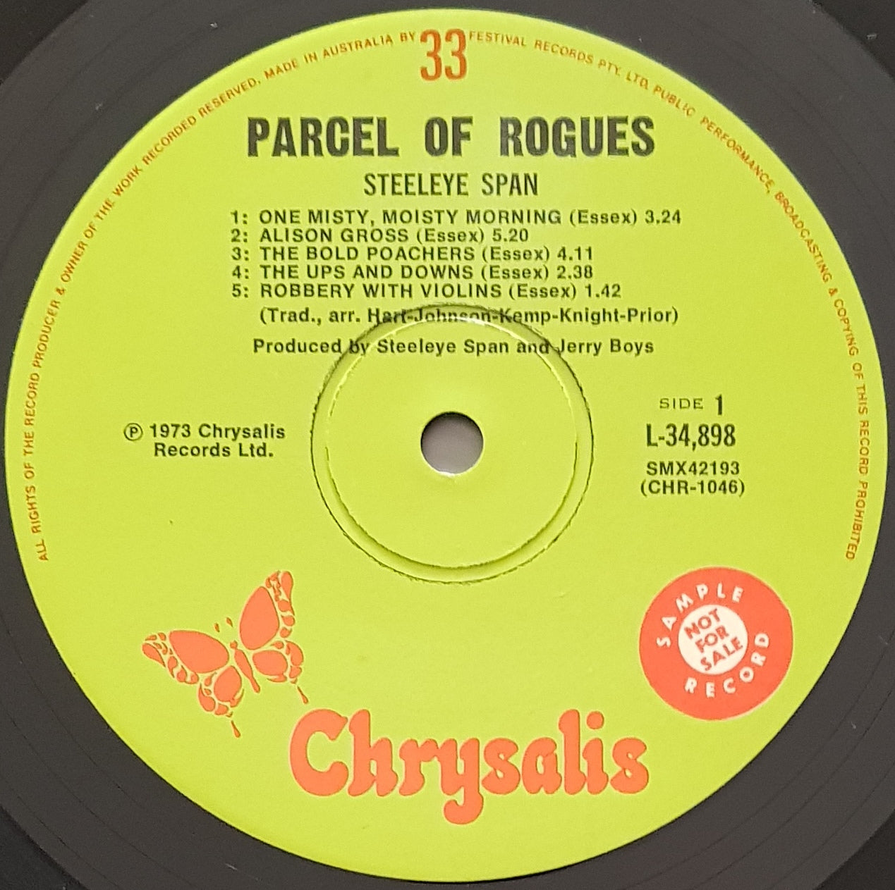 w.Insert. Original 1973 Green CHRYSALIS L-34898