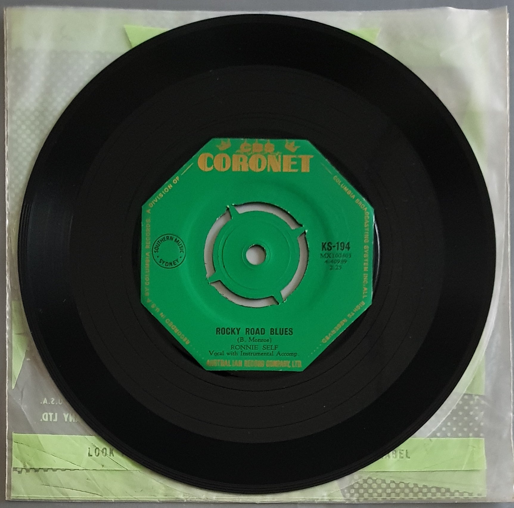1958 Original Octagonal CORONET Label KS-194 with Original Label Sleeve.
