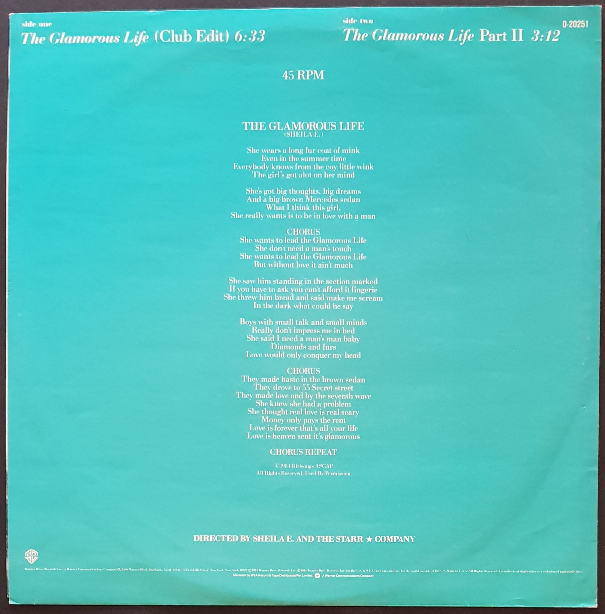 PS. 1984 Warner Bros. 0-20251. Cover has minor wear and creasing