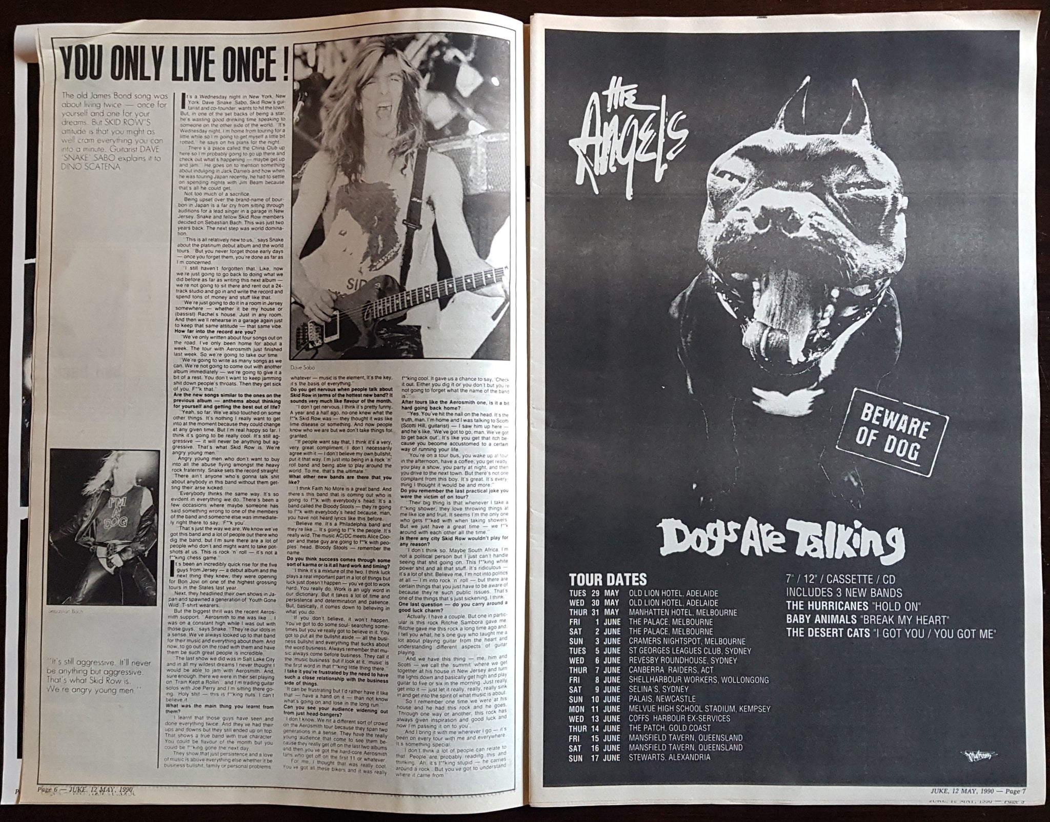 w. Skid Row Cover & Article. Issue Also Features, Reviews And Or Has Ads For The Angels, Michael Hutchence, Motley Crue + Others.