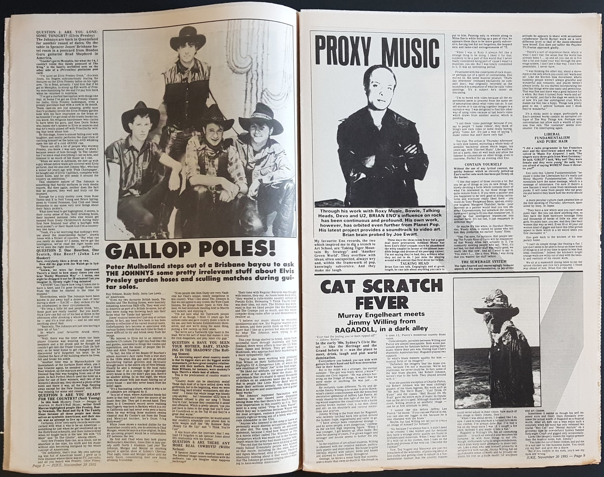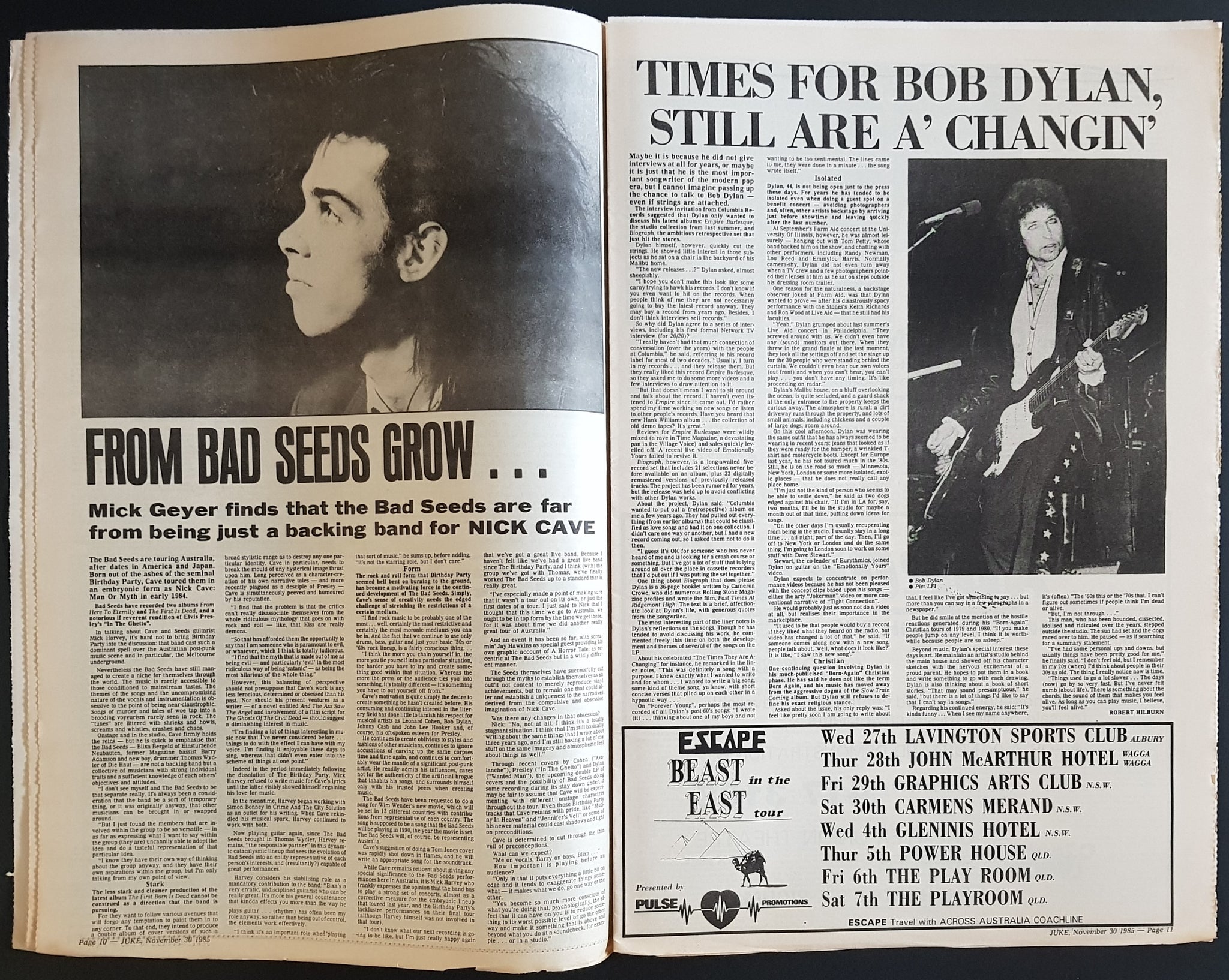 w. Colour Cover & Article. Issue Also Features, Reviews And Or Has Ads For The Johnnys, Brian Eno, Nick Cave, Bob Dylan, Iva Davies - Boxes, Neil - Young Ones, John Taylor Poster + Others.