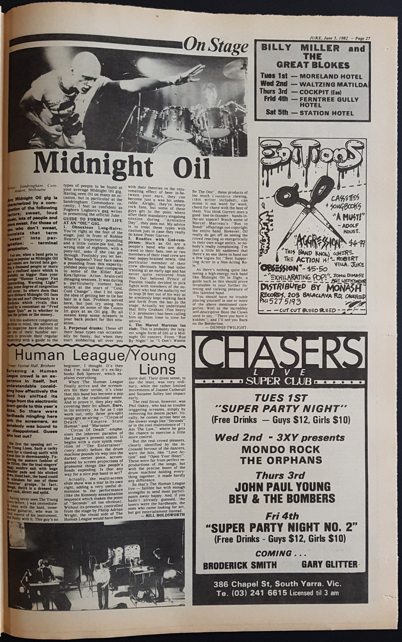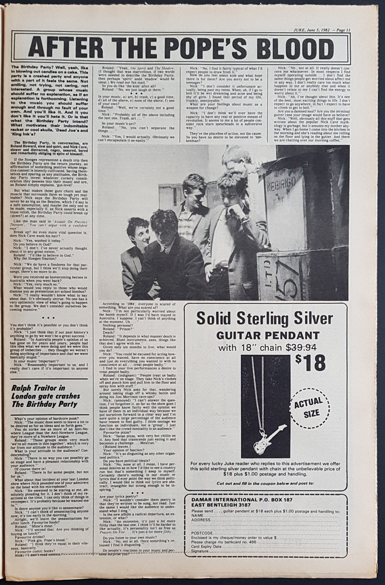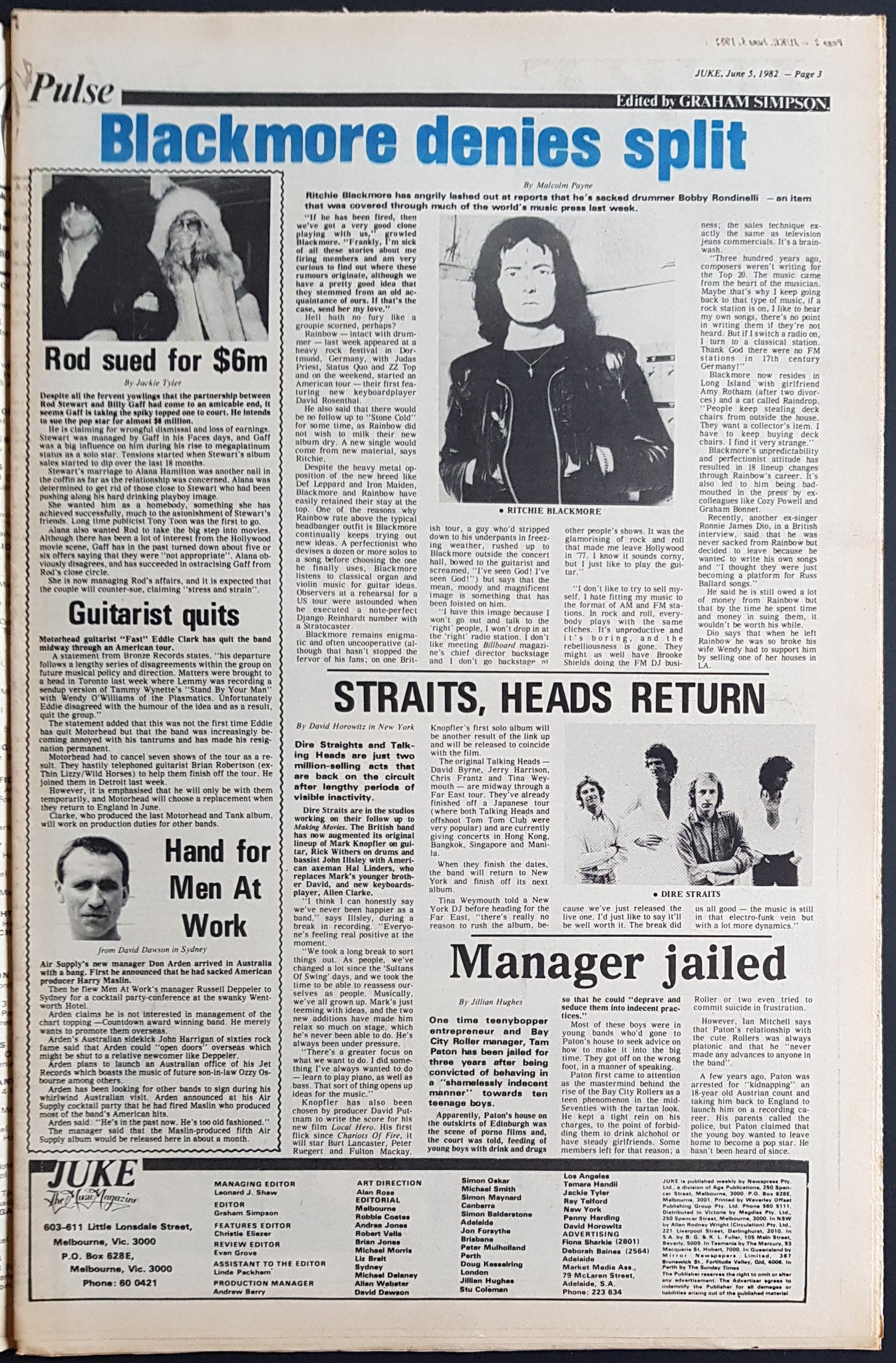 w. Swanee Cover & Article. Issue Also Features, Reviews And Or Has Ads on Ritchie Blackmore, Dire Straits, Tinsley Waterhouse, XTC, Birthday Party, Icehouse, Prince, Jeff St.John, Midnight Oil, Cold Chisel + Others. Writing on Cover