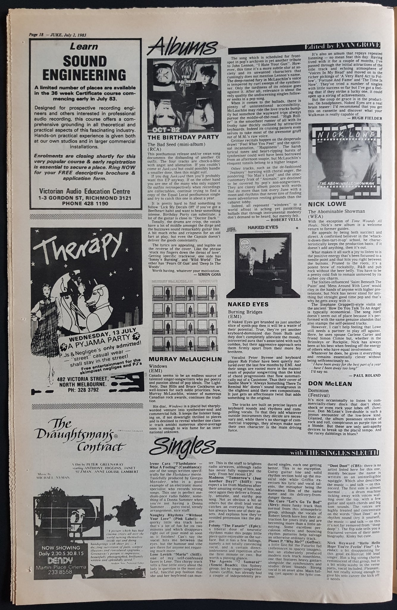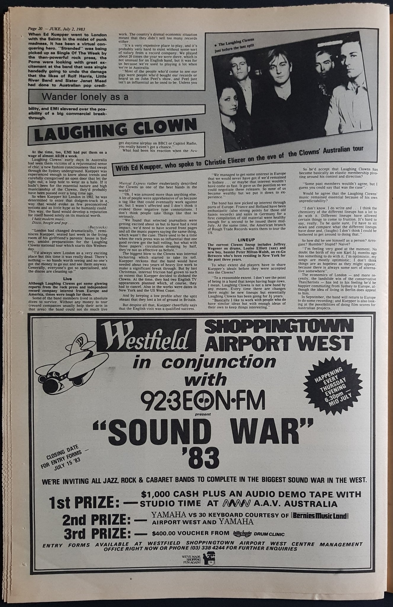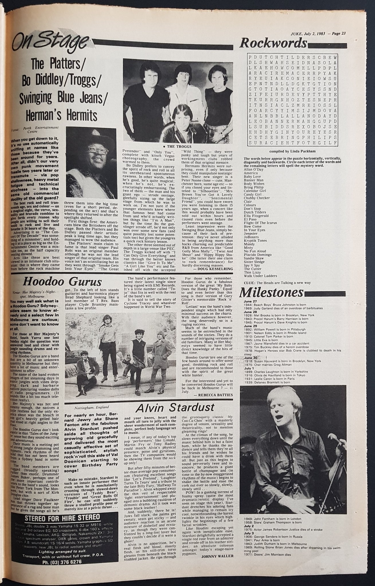 w. Rod Cover & Article. Issue Also Features, Reviews And Or Has Ads for Kiss, The B-52's, Tex Deadly, Birthday Party, Laughing Clowns, Hoodoo Gurus, Mike Oldfield + Others.