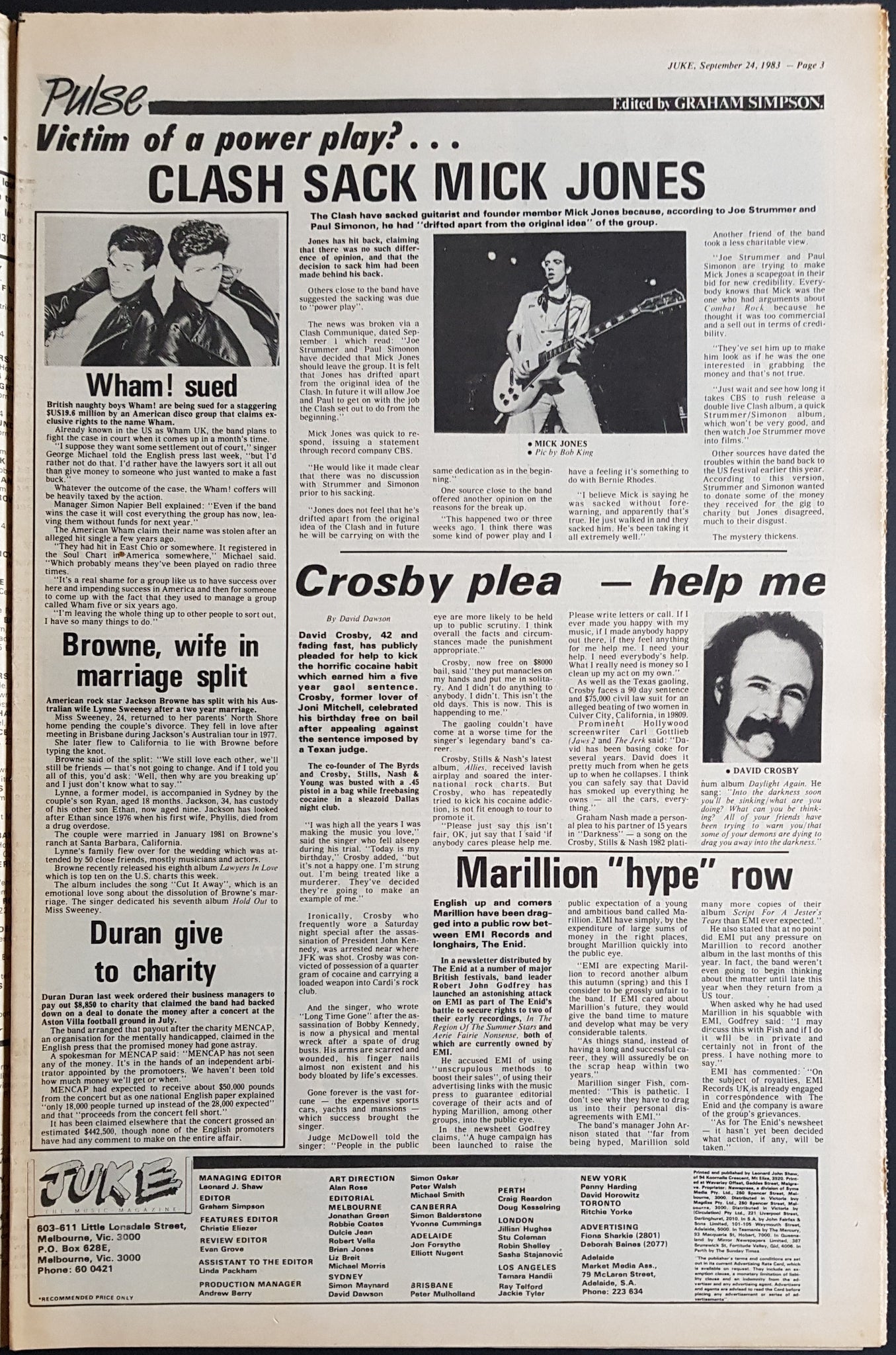 w. Jim Cover & Article. Issue Also Features, Reviews And Or Has Ads for The Clash, Ignatius Jones, Cold Chisel, Beasts Of BourbonBengal Tigers, Ion Drive + Others.