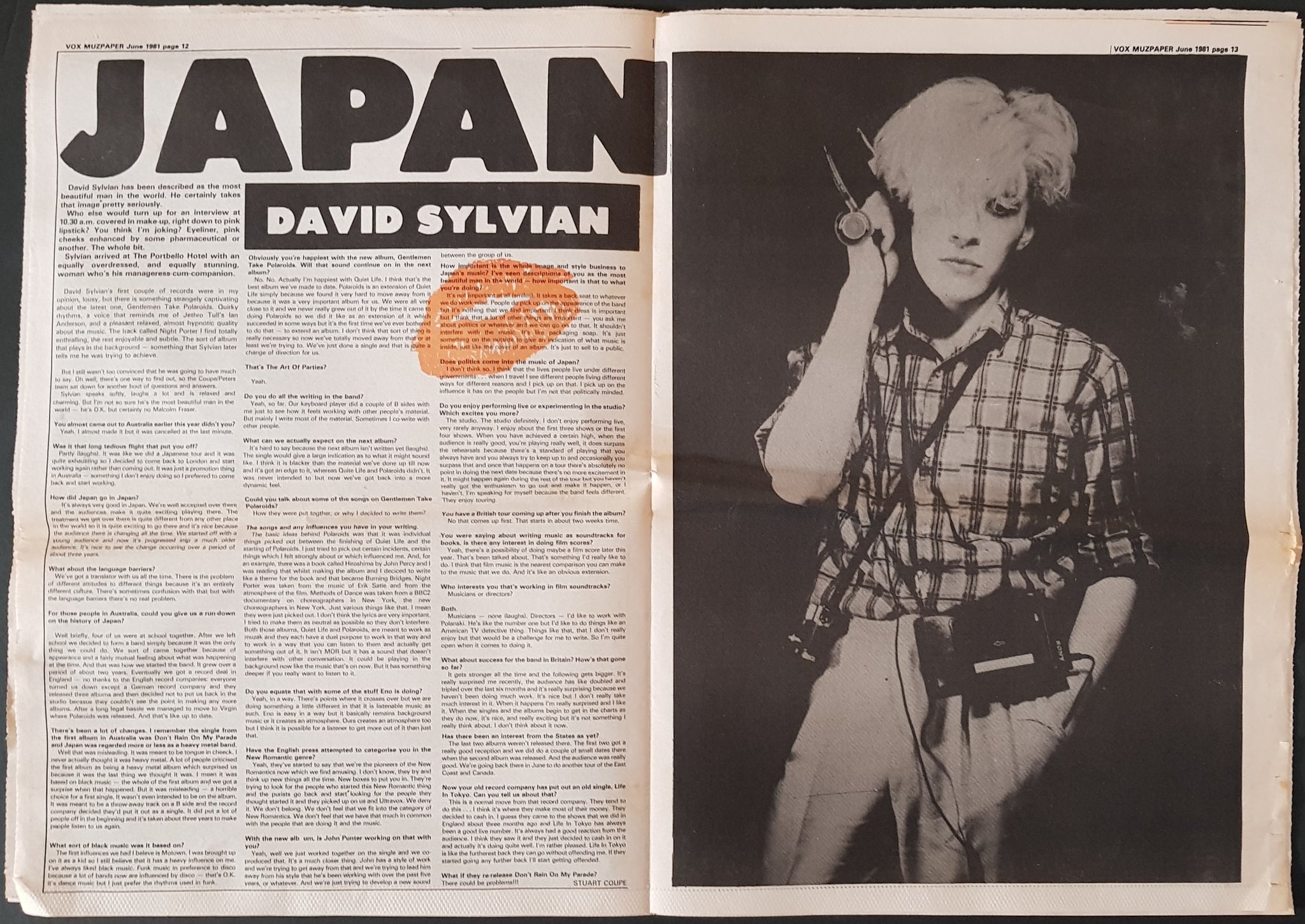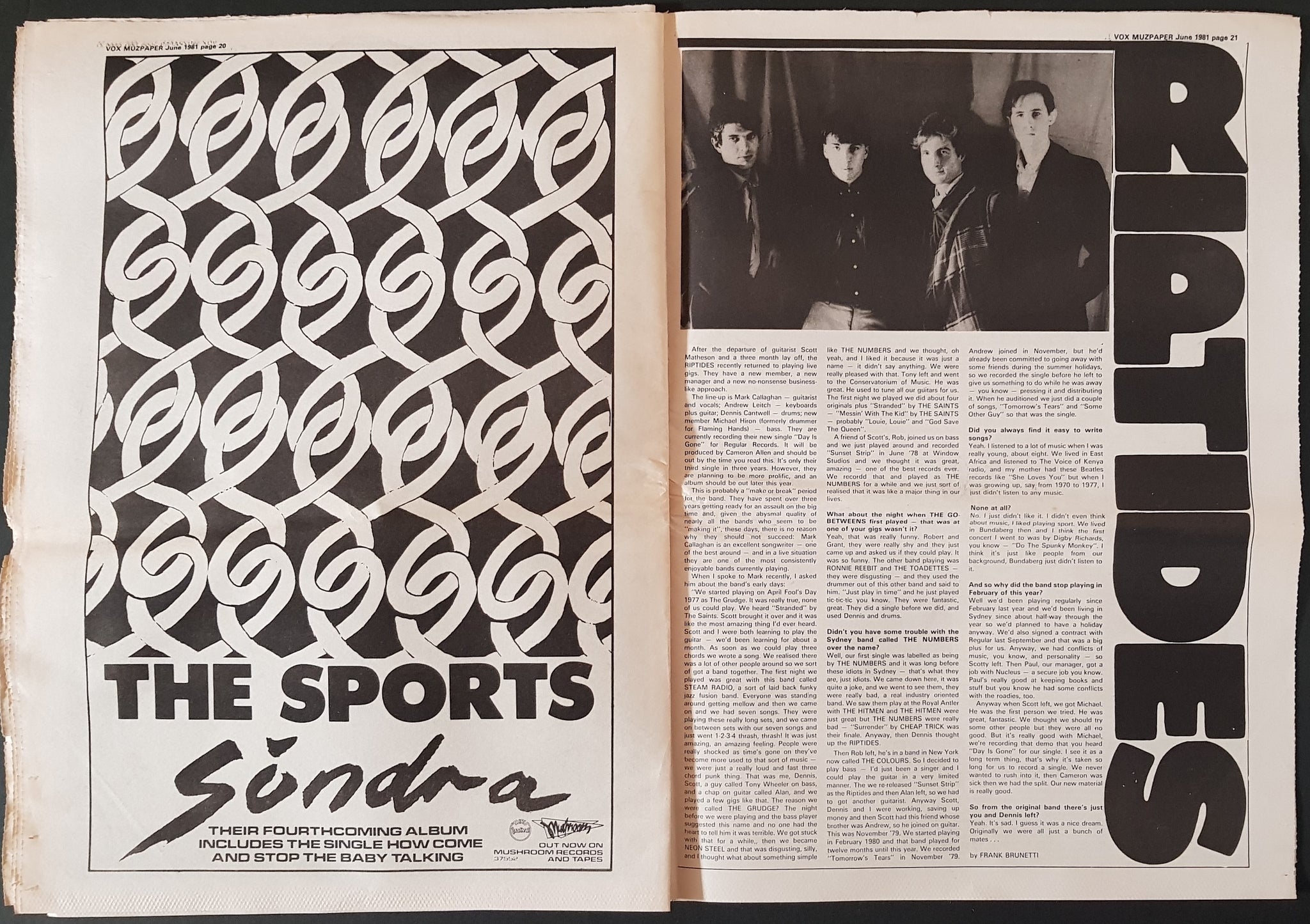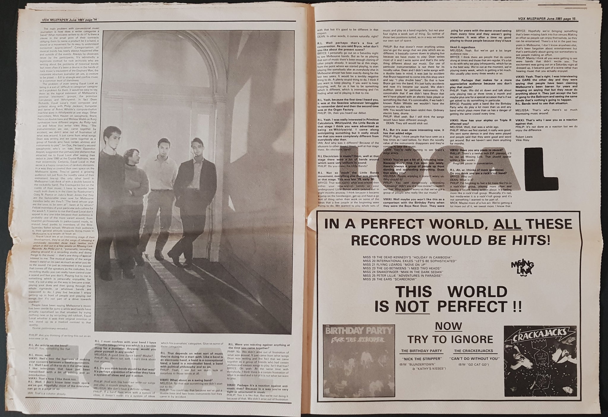 Style Magazine. Stephen Cummings Cover & Sports Feature. Articles on Karen Marks, Little Murders, The Church, Crass, M Squared, David Sylvian, Equal Local, Gang Of Four, Riptides. Folded