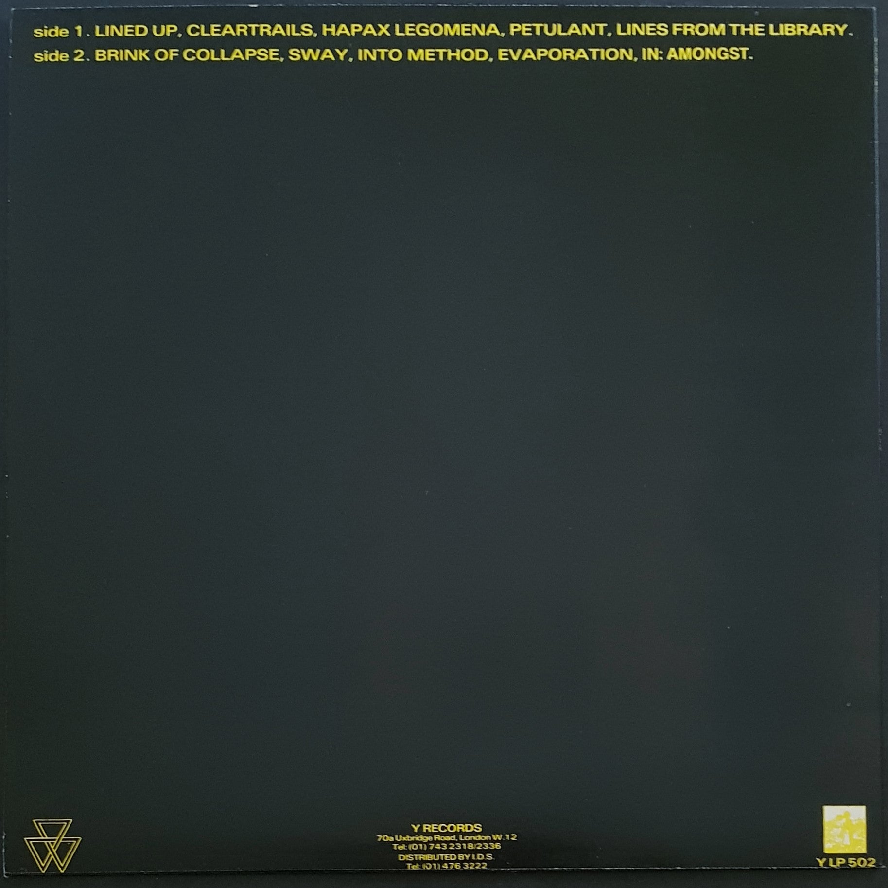 w.Inner Sleeve. 1983 Y Records Y LP 502.