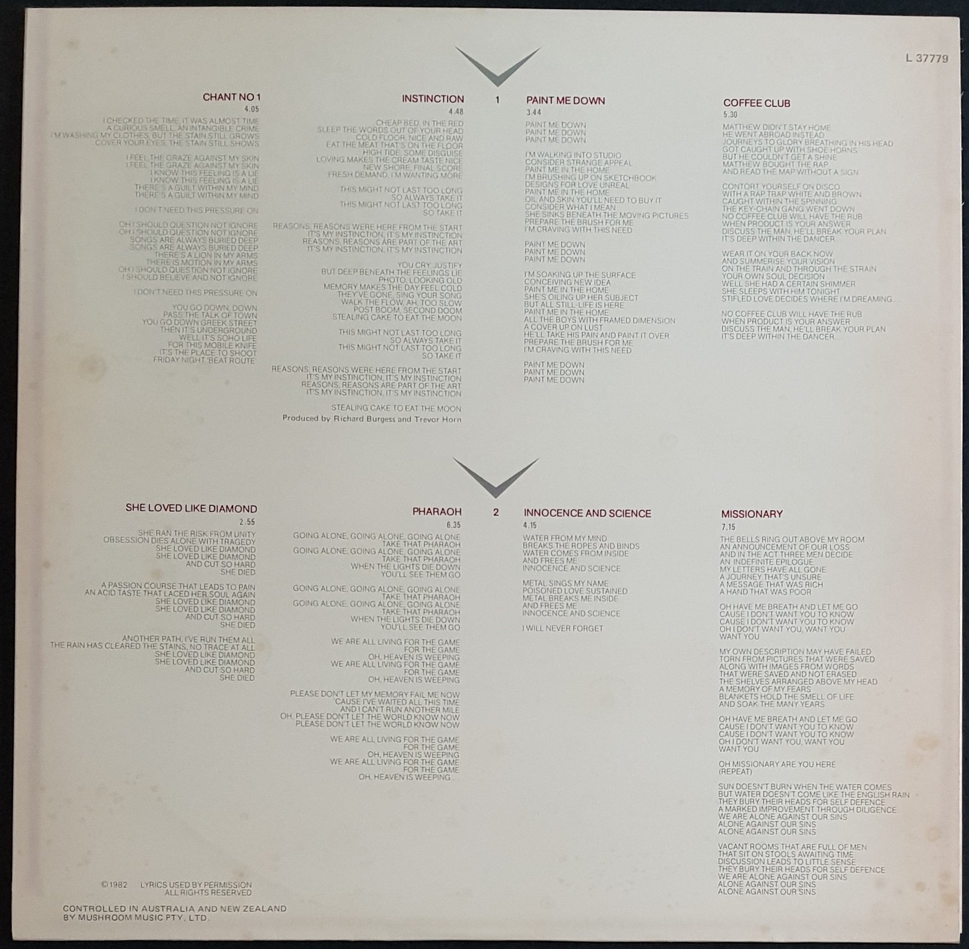w.Inner Sleeve (Has Heavy Foxing). 1982 Chrysalis L37779. Cover has corrugated feel to it on textured sides.