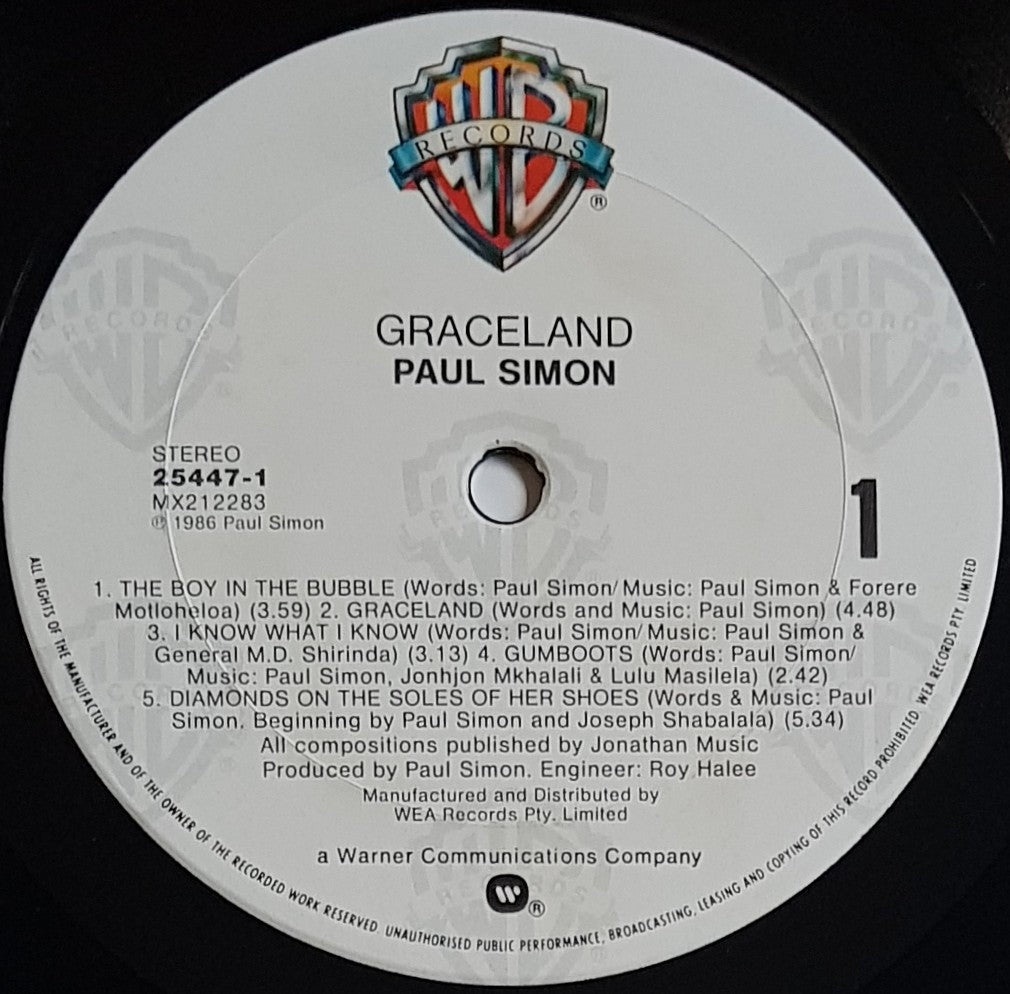 w.Inner Sleeve. 1986 Warner Bros. 25447-1. Alternate Paul Simon Cover. Cover has small price tag stain