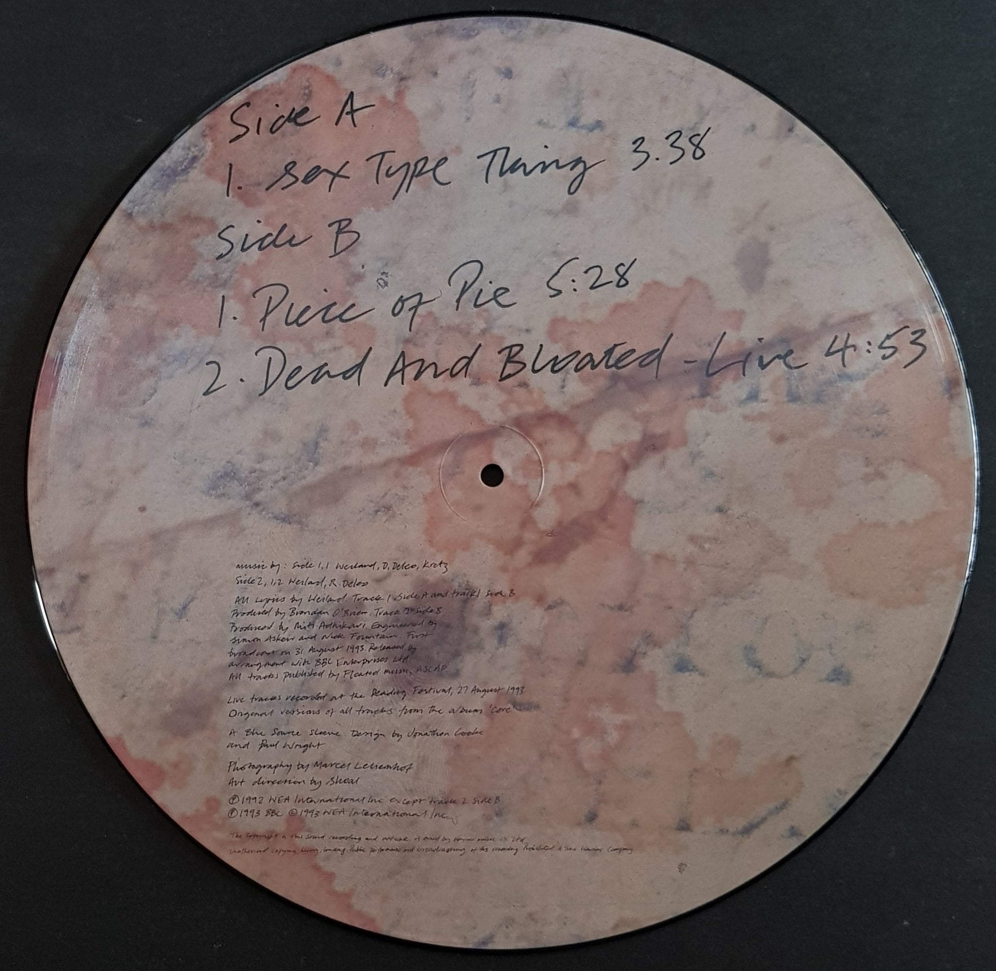 Picture Disc. 1993 Atlantic A7293TP. Clear PVC Inner Sleeve with Hype Sticker. Outer die-cut cover has seam split, creases along spine, small surface tear on rear & deletion cut mark