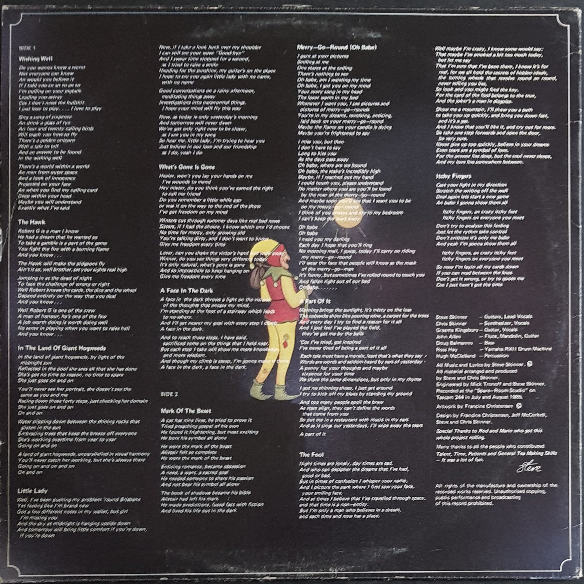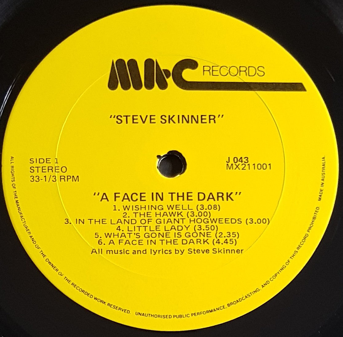 1985 Mac Records J 043. Ring wear and creases on cover, with small seam split and small damage spot at opening. Small mark and the end of The Hawk, otherwise NM