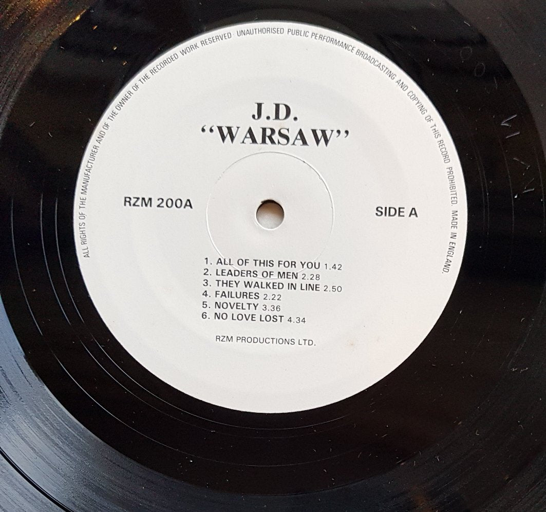 ONLY. No 7". 1981 RZM Productions RZM -200. Fully laminated Cover. Large Font J.D. Warsaw Label. Large Runout Area with Large Cut Matrix Numbers. Corner Creases on Cover