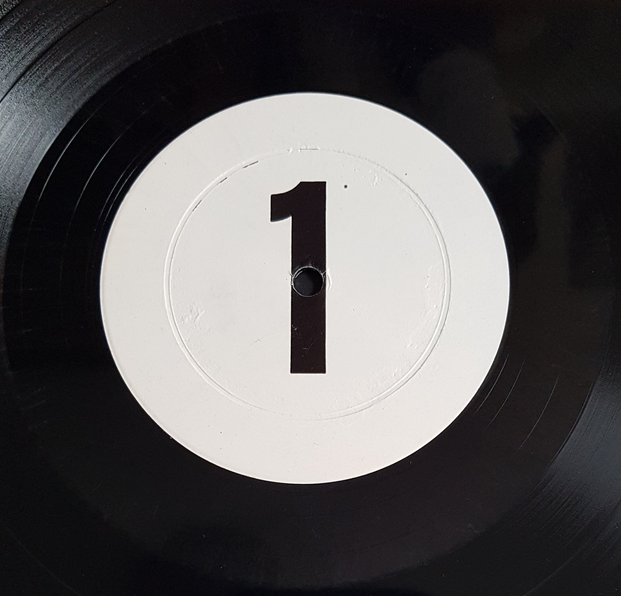 Black Vinyl No Label. White Cover with Loose insert Cover. White Labels with large numbers. Matrix is HH-1/2-STUDIO. Insert is MINT.